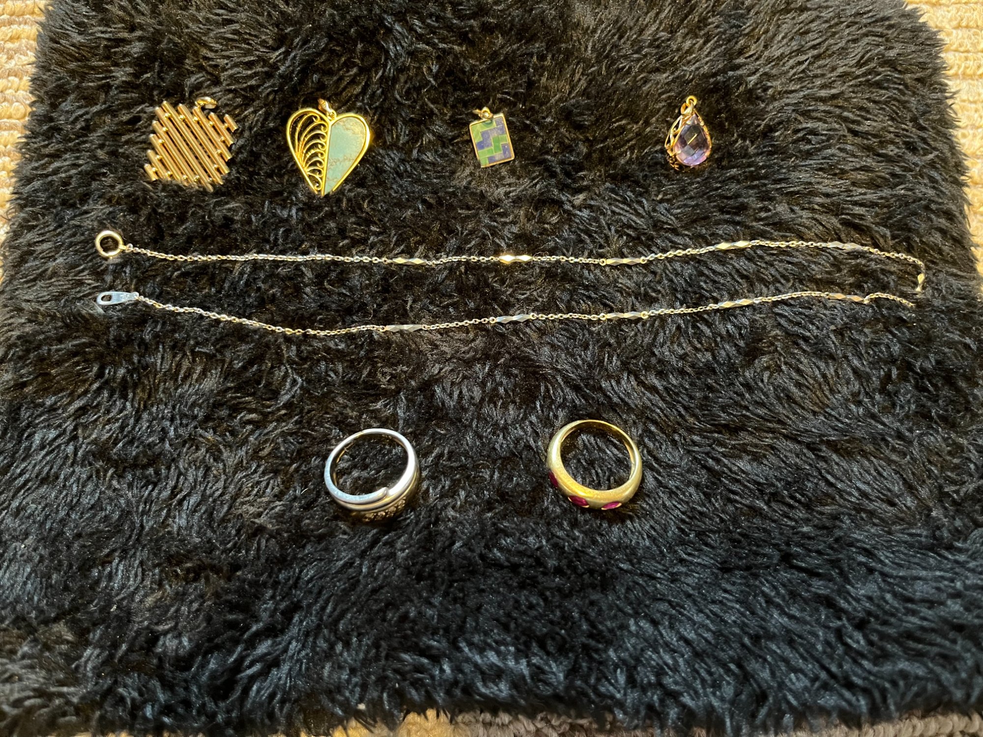18K+ルビーリング・18Kプラチナ850コンビ+ダイヤリング・プラチナ850ネックレス
