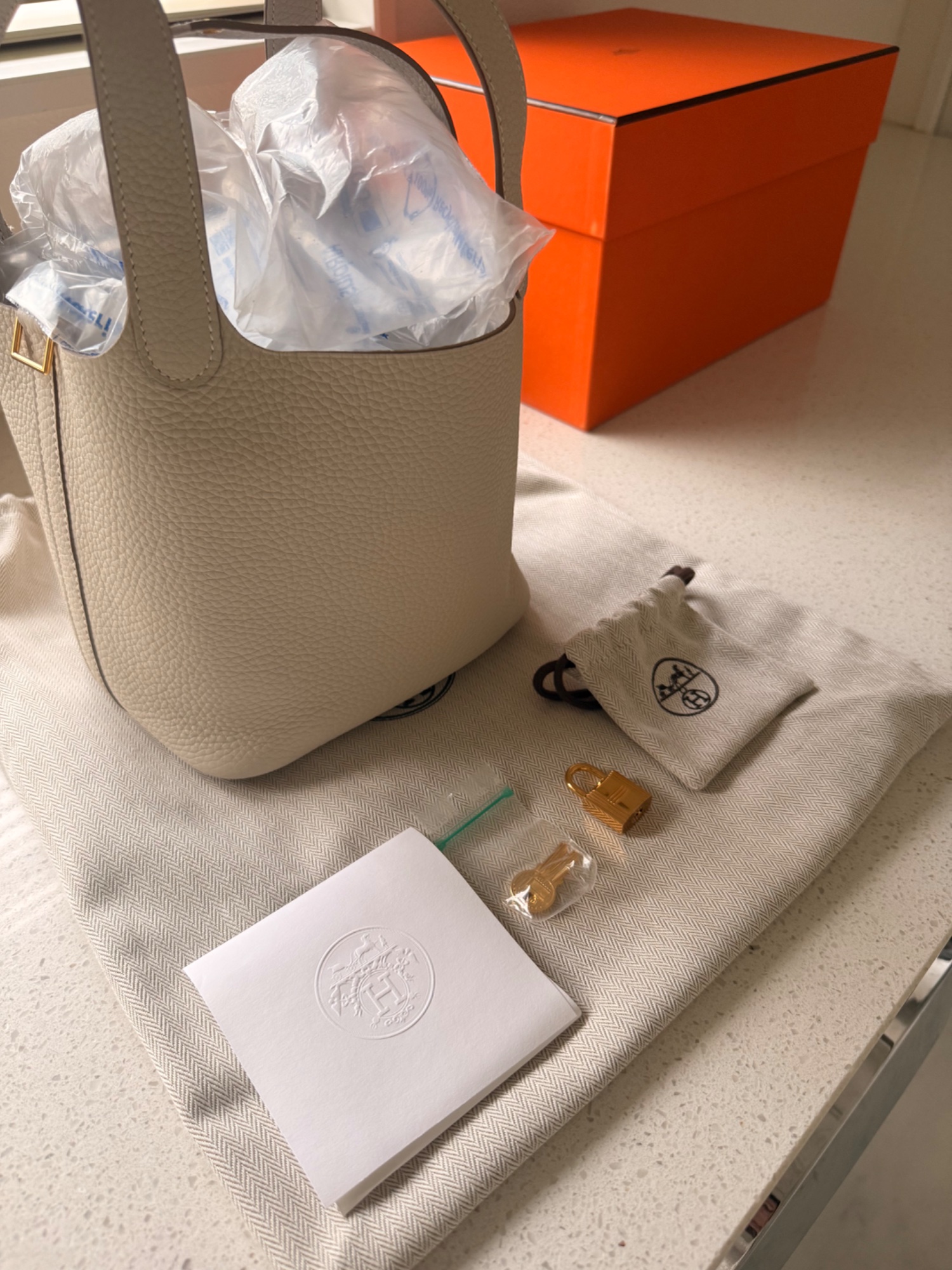 先日高島屋にて購入したばかりのピコタンロックpmです。開封したのみで未使用です。お色はクレだと聞いています。