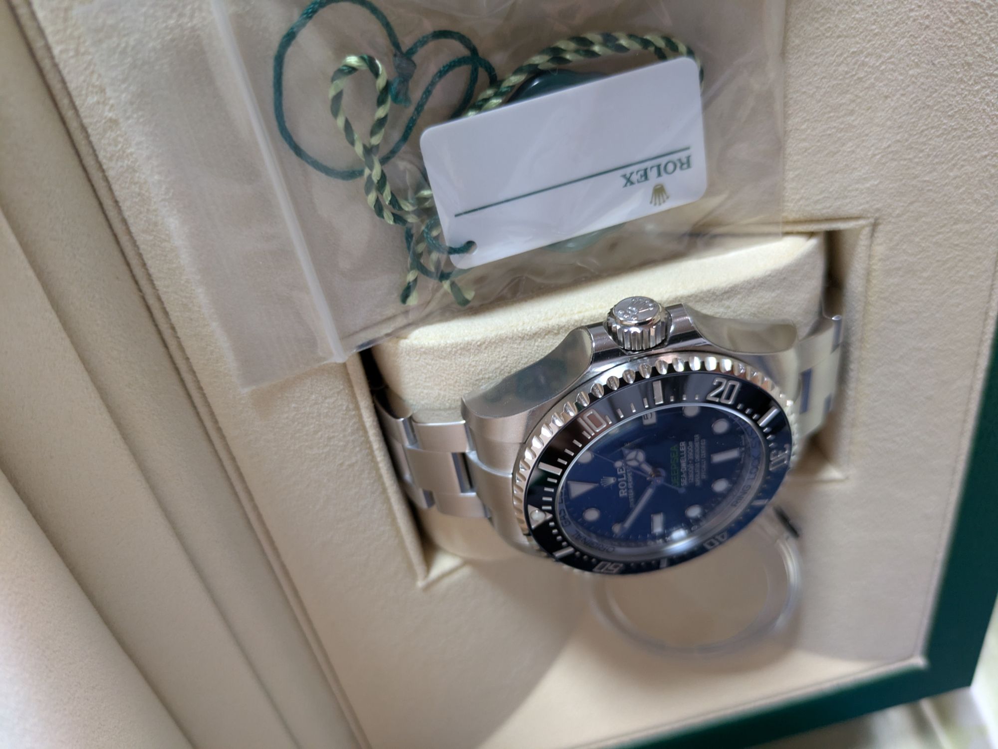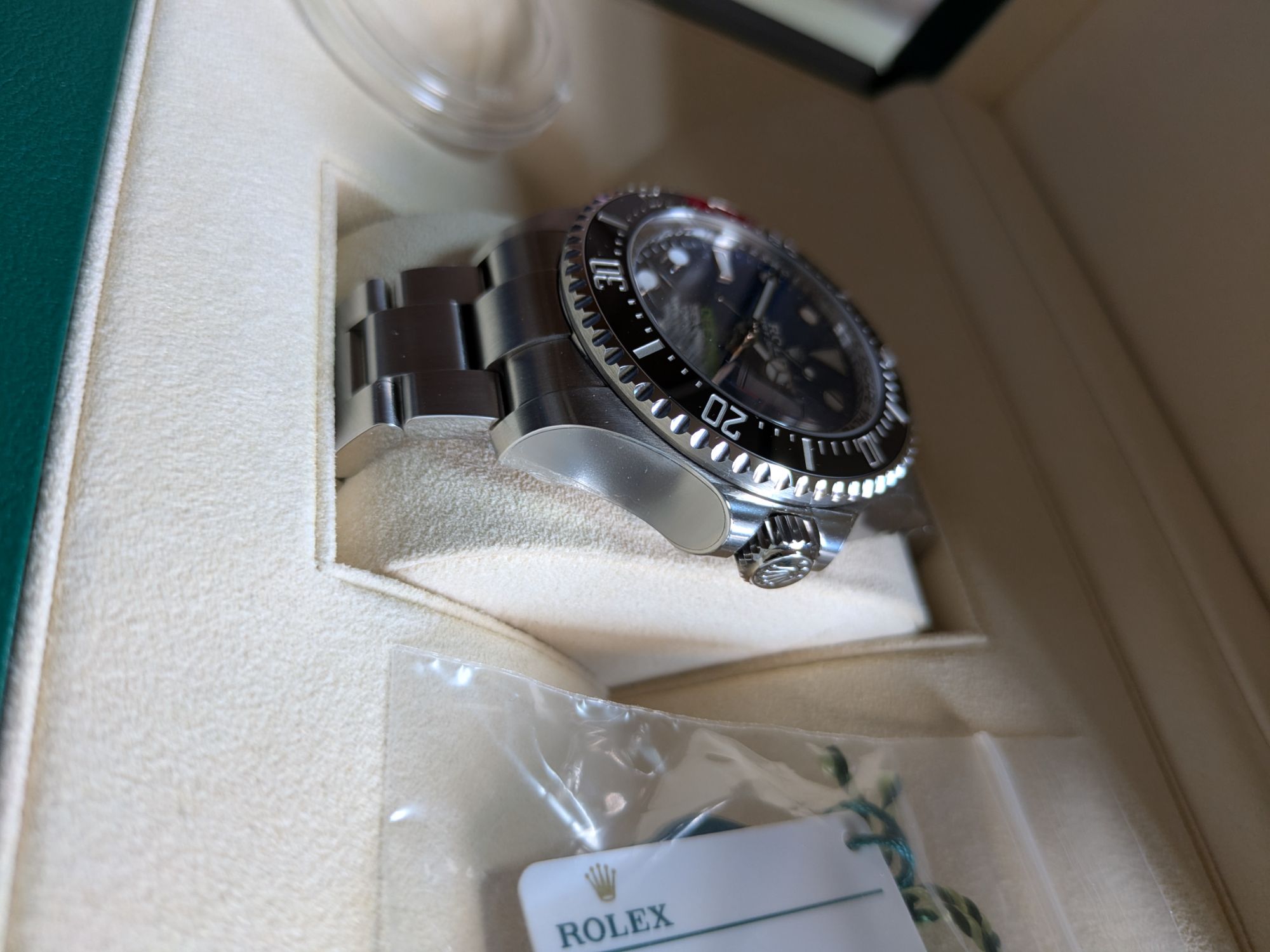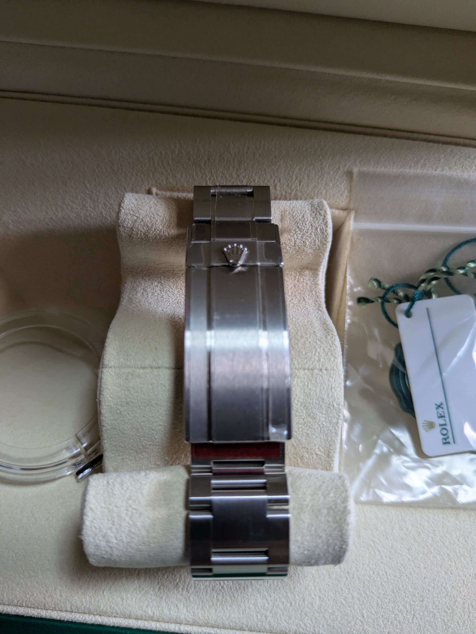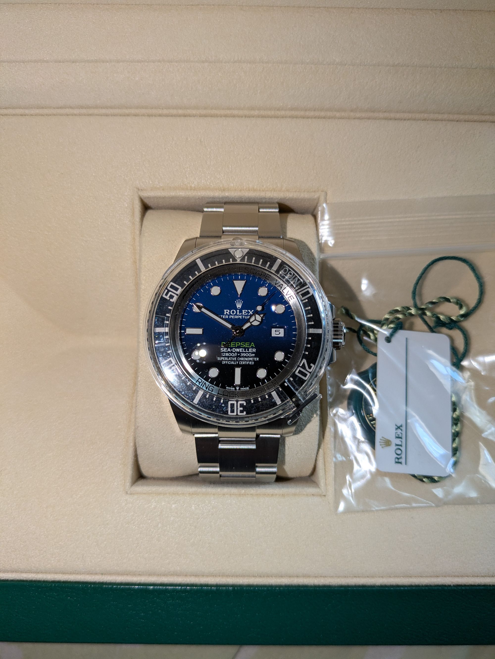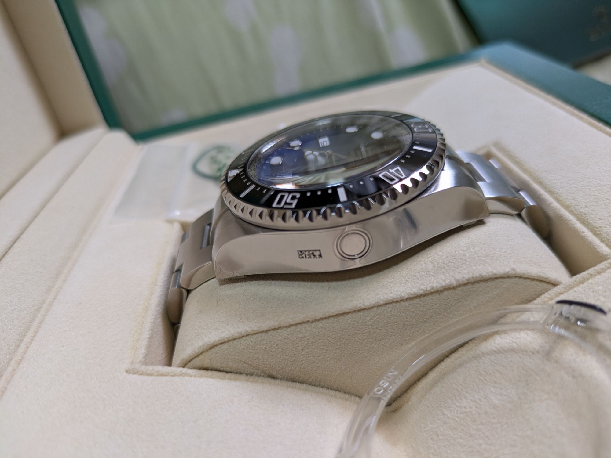 122660のディプシーブルーで、バックルと本体の左右サイドに保護シール、ベゼルカバー有りになります。