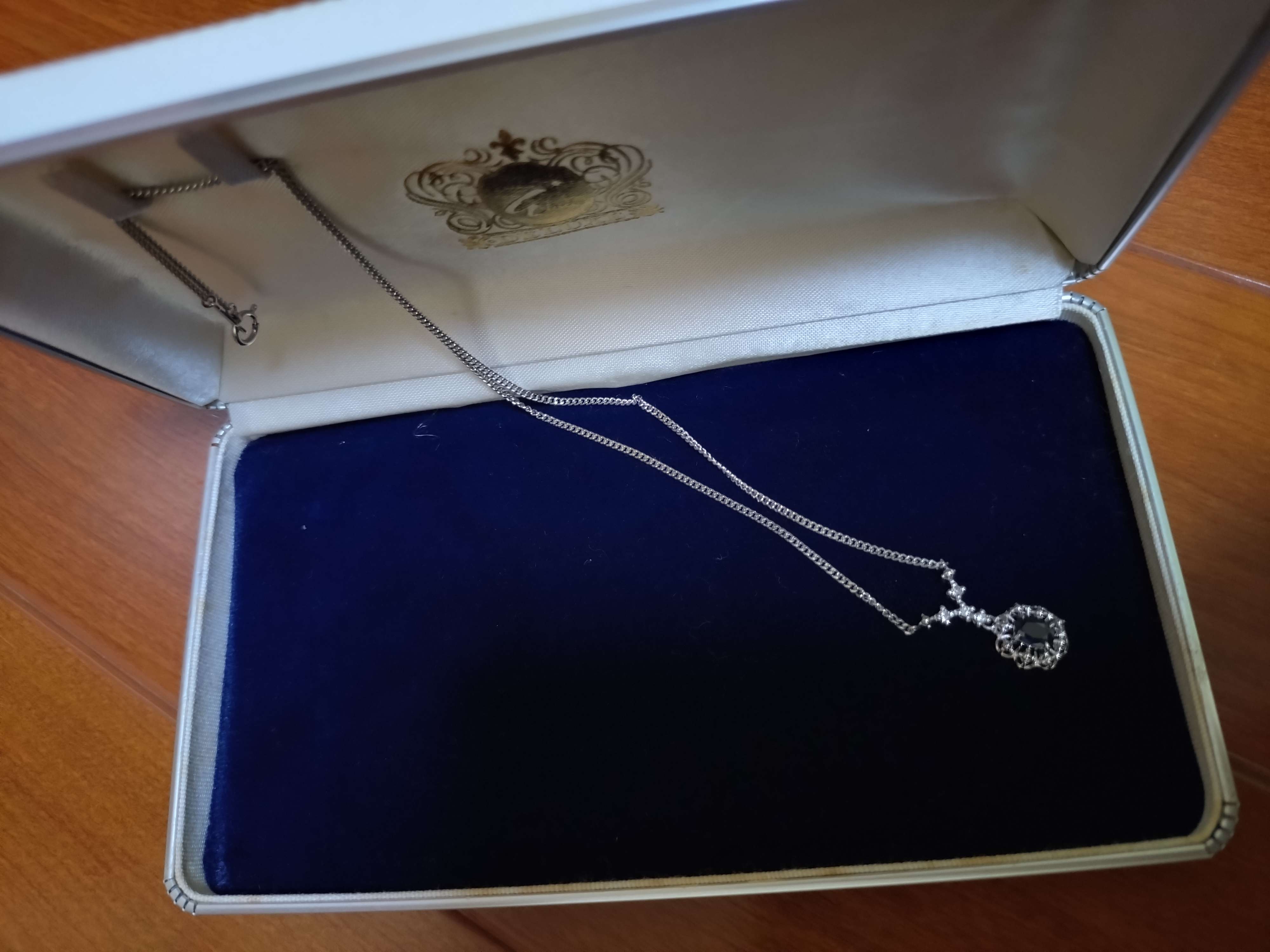 母から譲り受けた物で30年以上前に購入。宝石は多分サファイアだと思います。ほぼ使用無し、鑑定書等ありません。