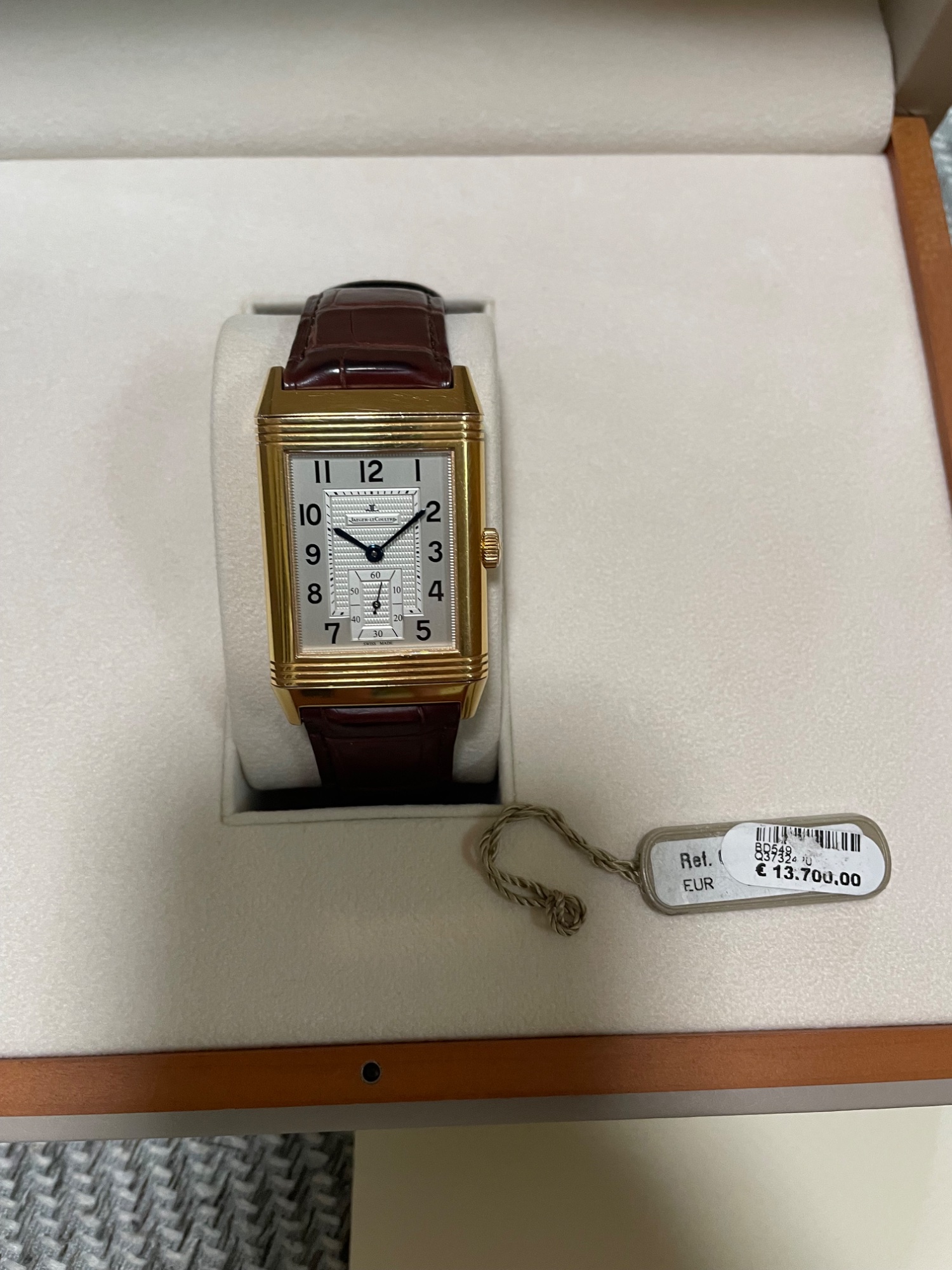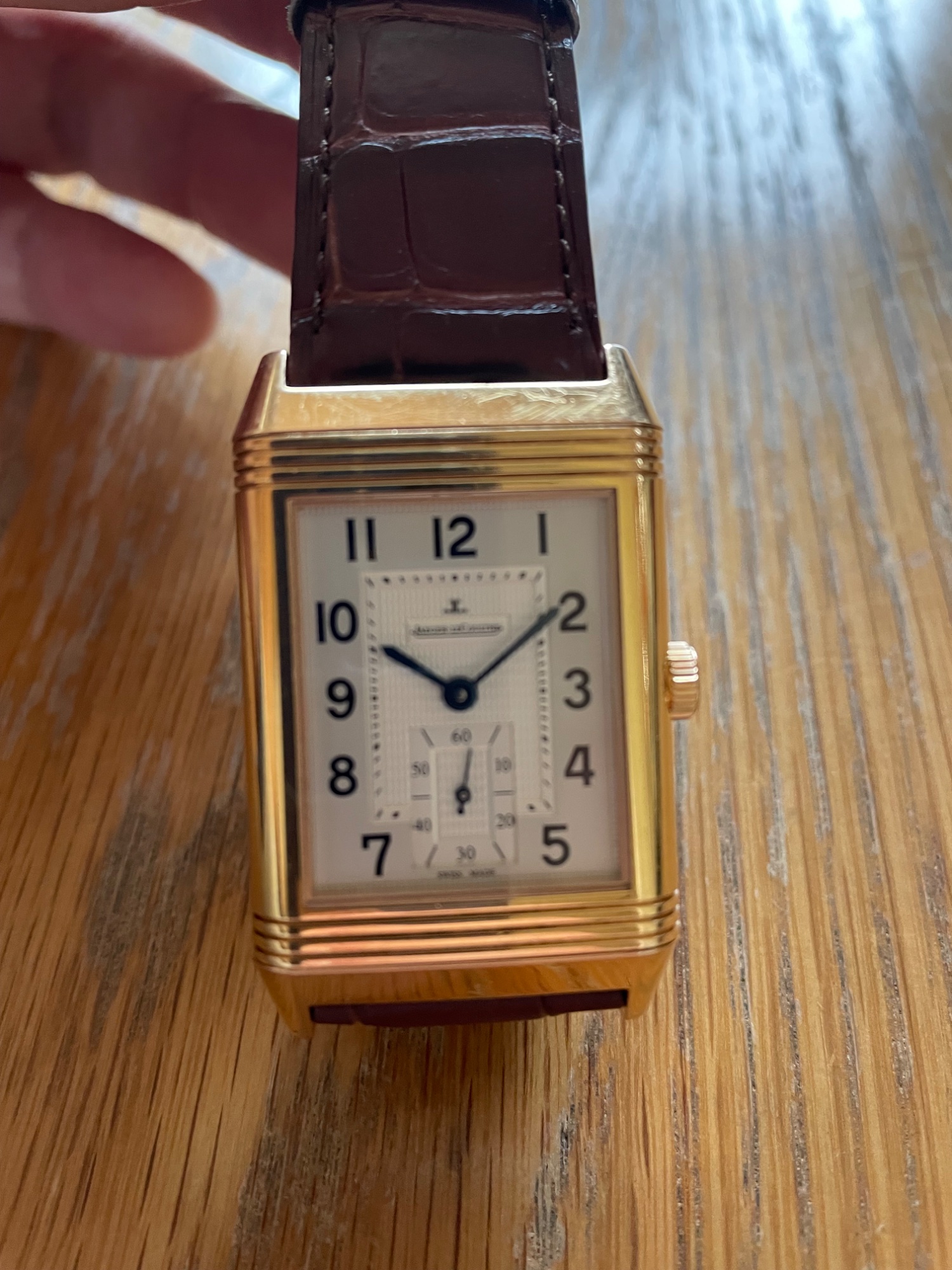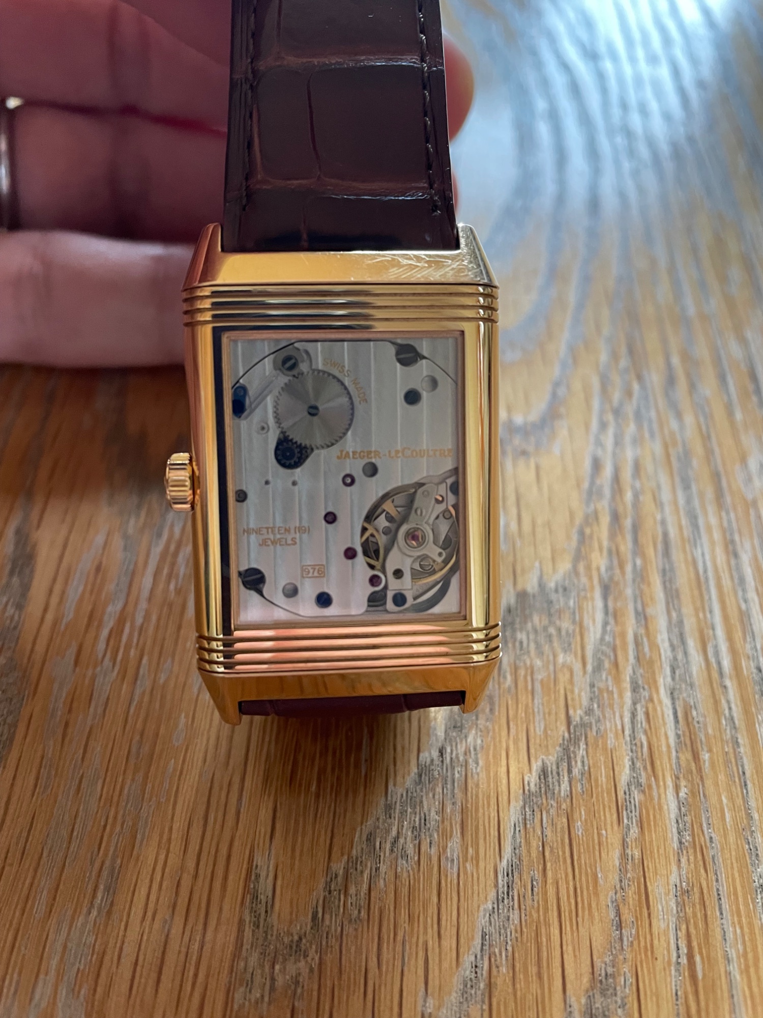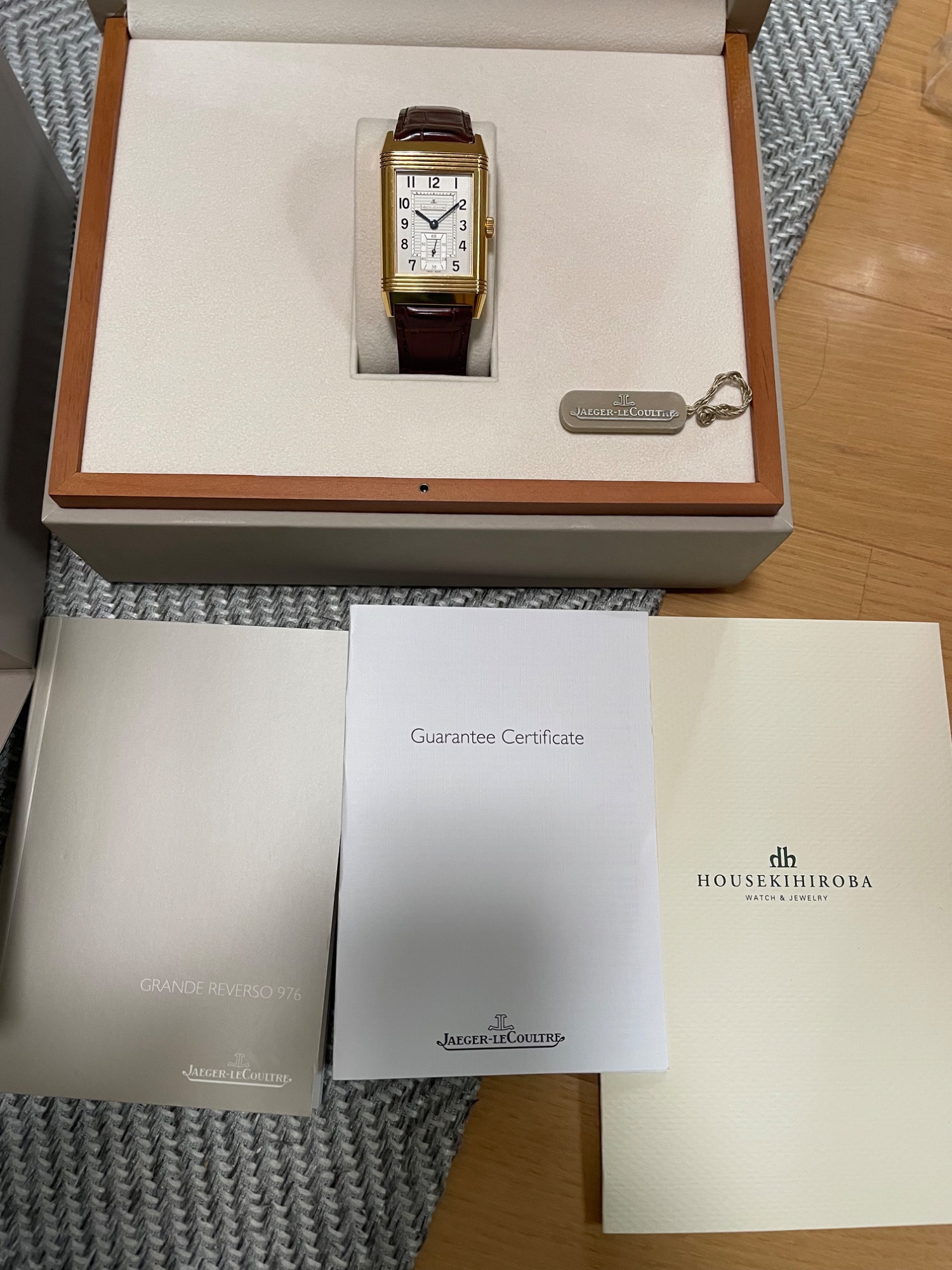 2012年に宝石広場で購入した、ジャガールクルトグランドレベルソ 976。ピンクゴールドの物です。磨きなしなので、金の減りはありません。小傷はあります。箱、保証書、説明書、当時の値札付きです。