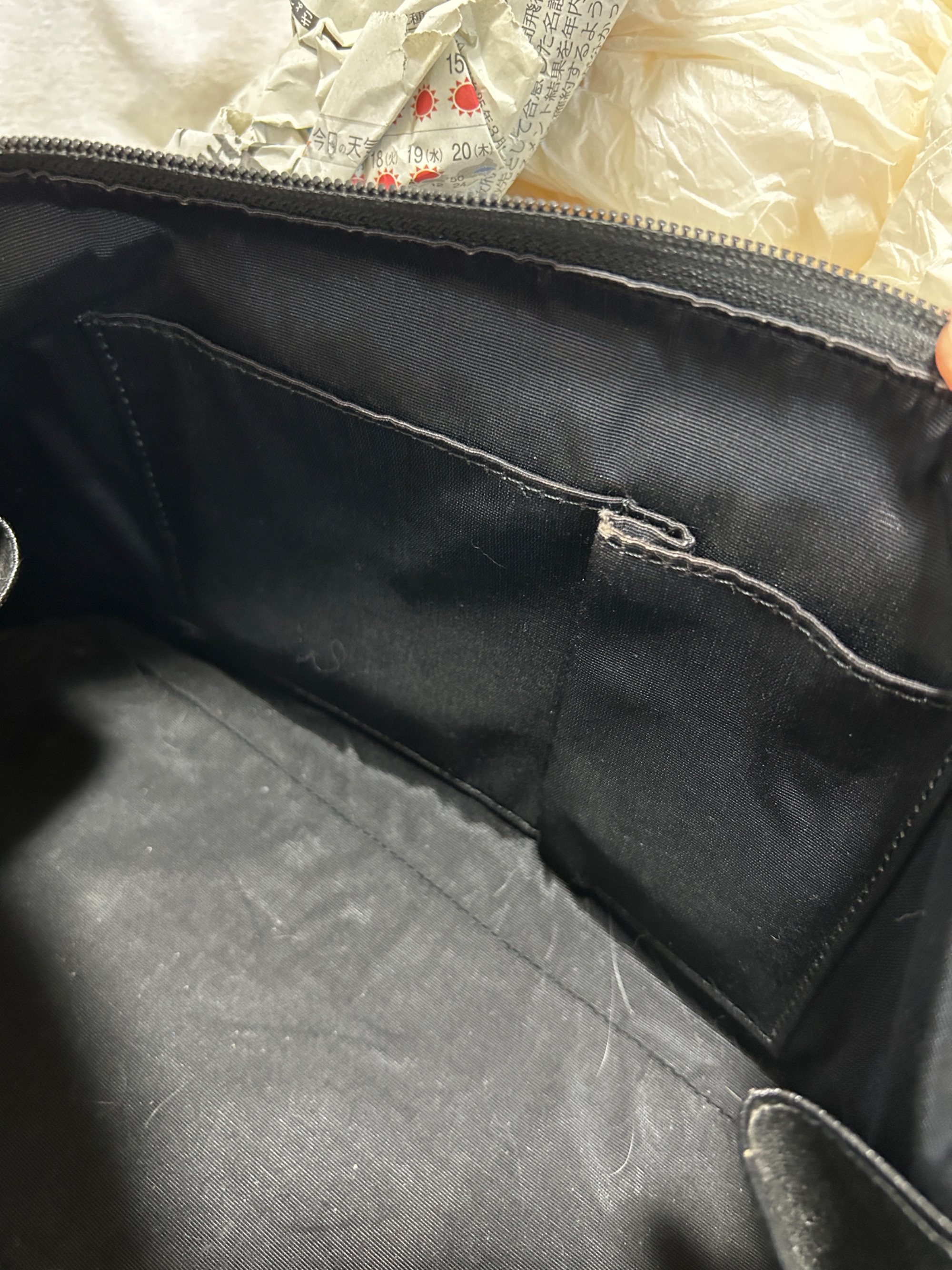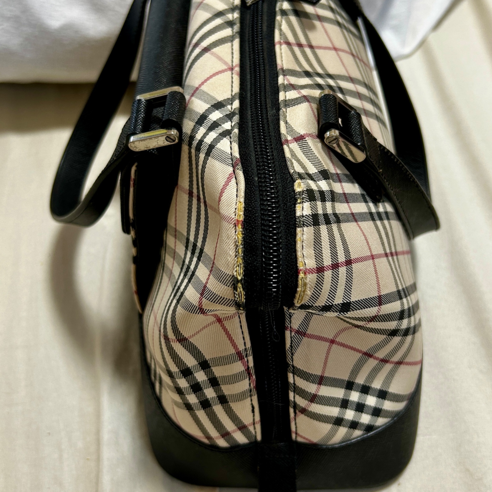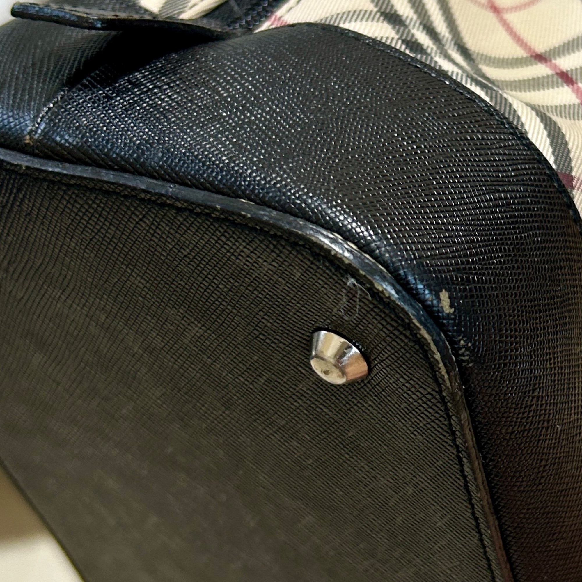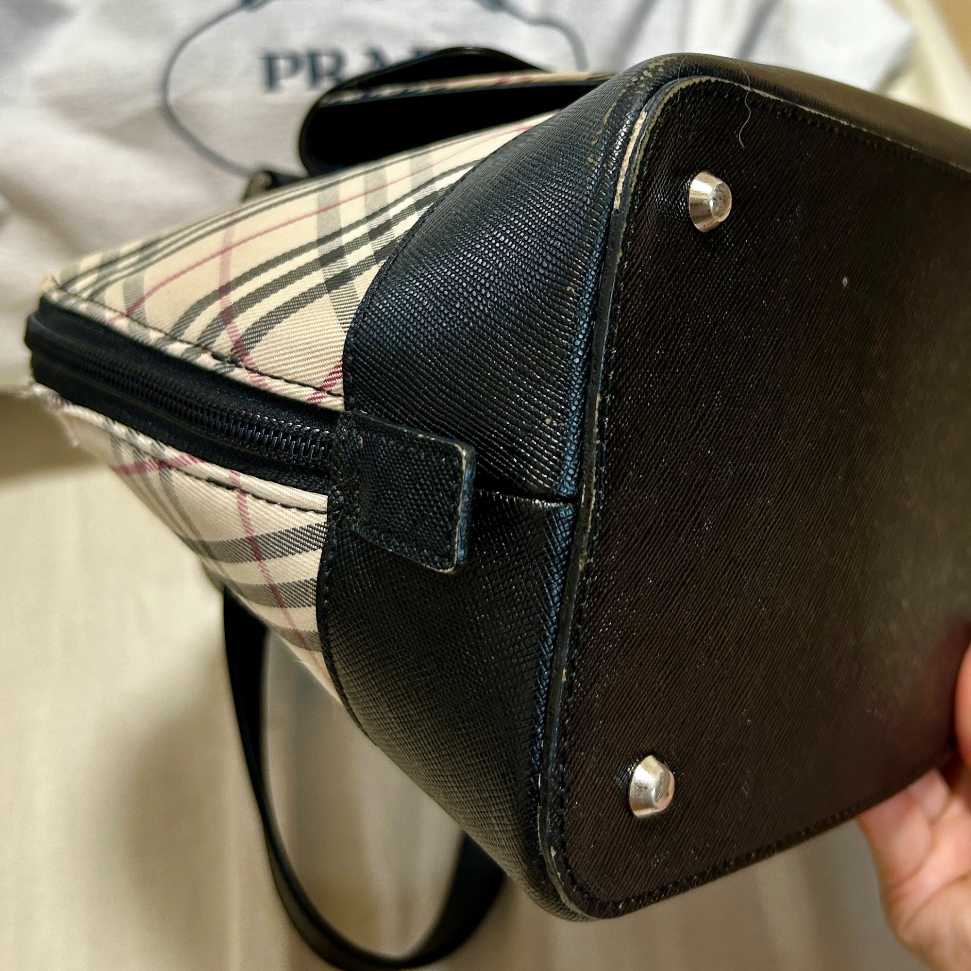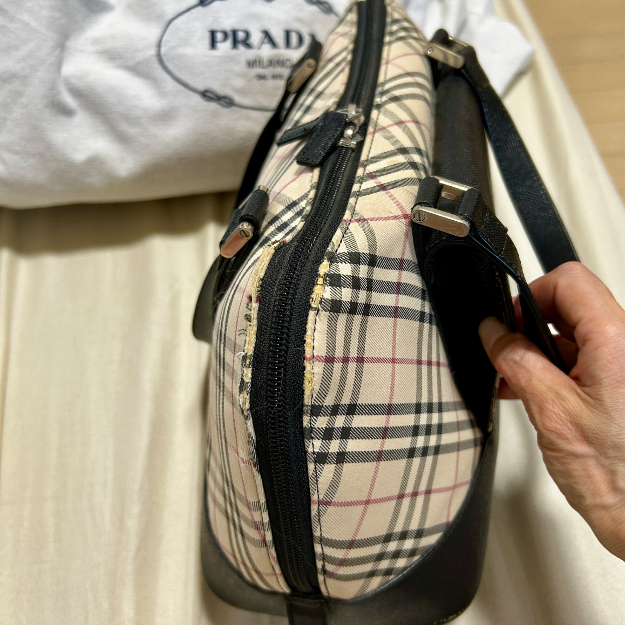 角の布が擦り切れている。