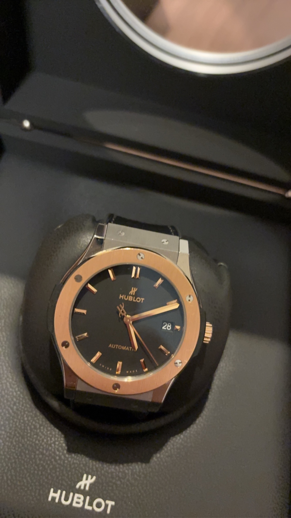 2025年2月1日に表参道ブティックで新品購入。付属品説明書・専用ケース含めて全てあり。保証書は電子QRコードにつき転売する際の添付は難しいと思います。盤面とバックルのローズゴールドに細かい擦り傷複数あり。ガラス部分は傷なし。