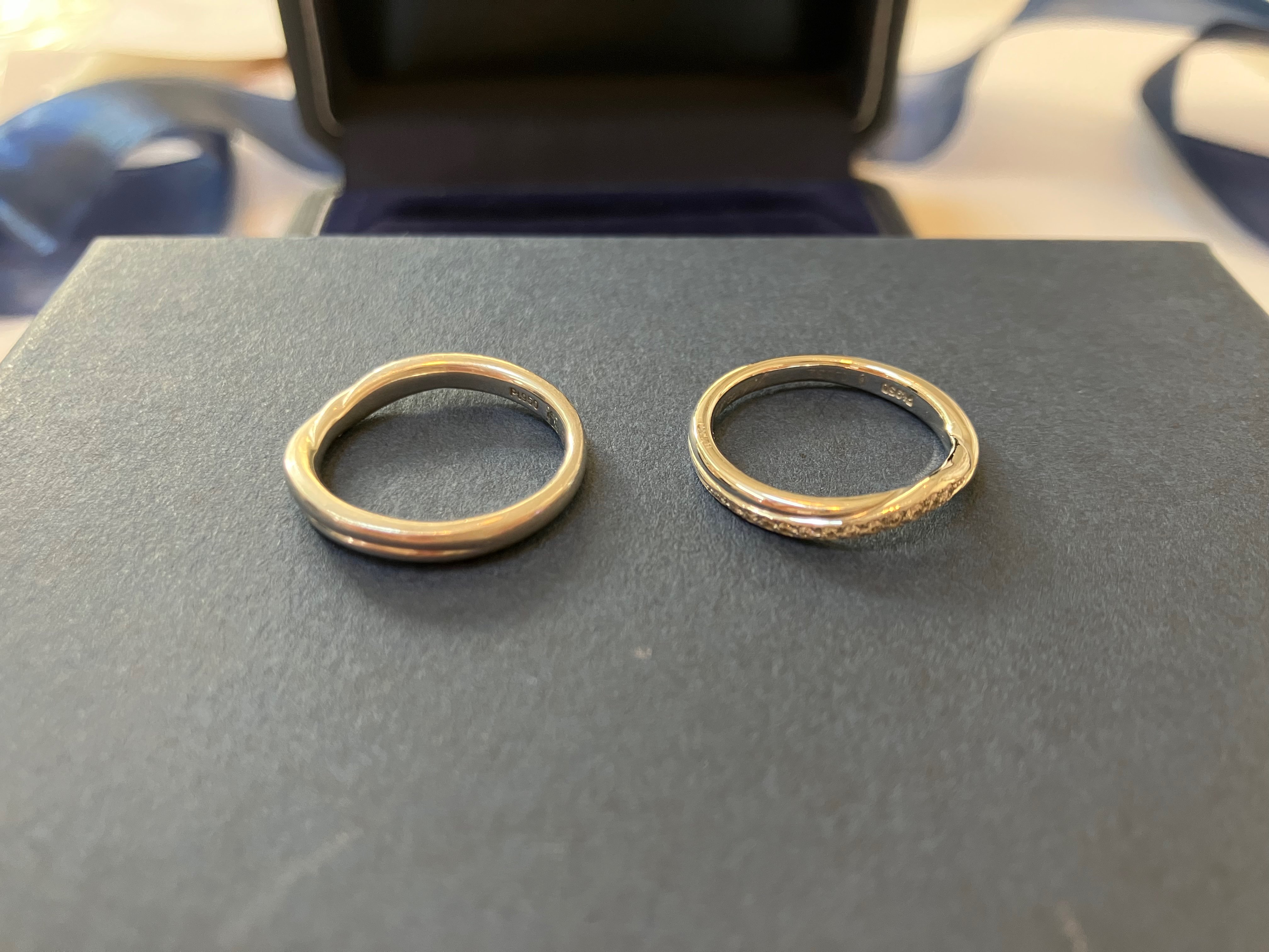 2019年、銀座本店にて購入。ダイヤモンドシライシの婚約指輪、結婚指輪の3点です。全てプラチナ。箱、鑑定書、アフターサービスカードもついています。サイズは、9、9.5、10です。
