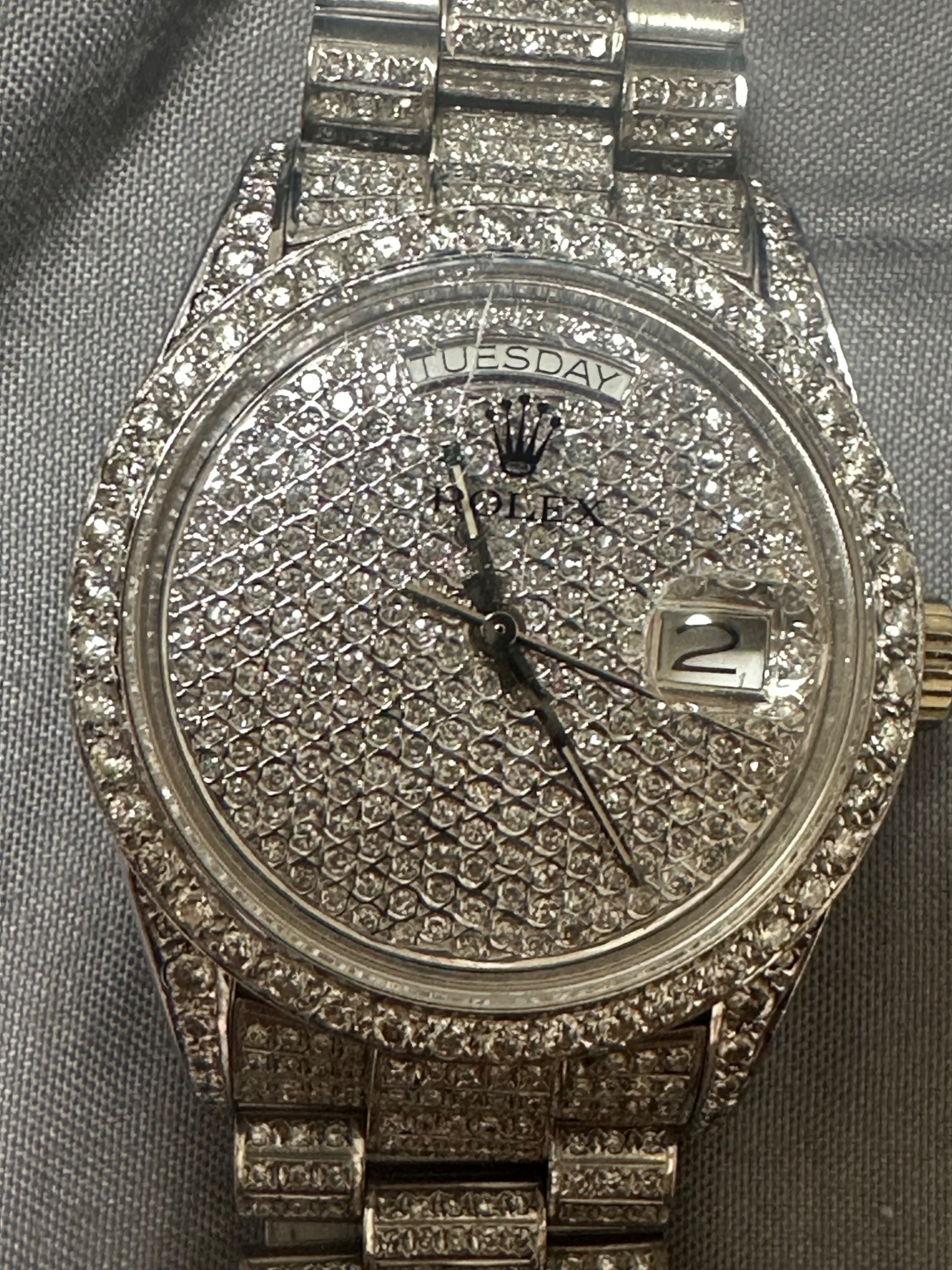 文字盤、ベルト全面にダイヤがセッティングされています。