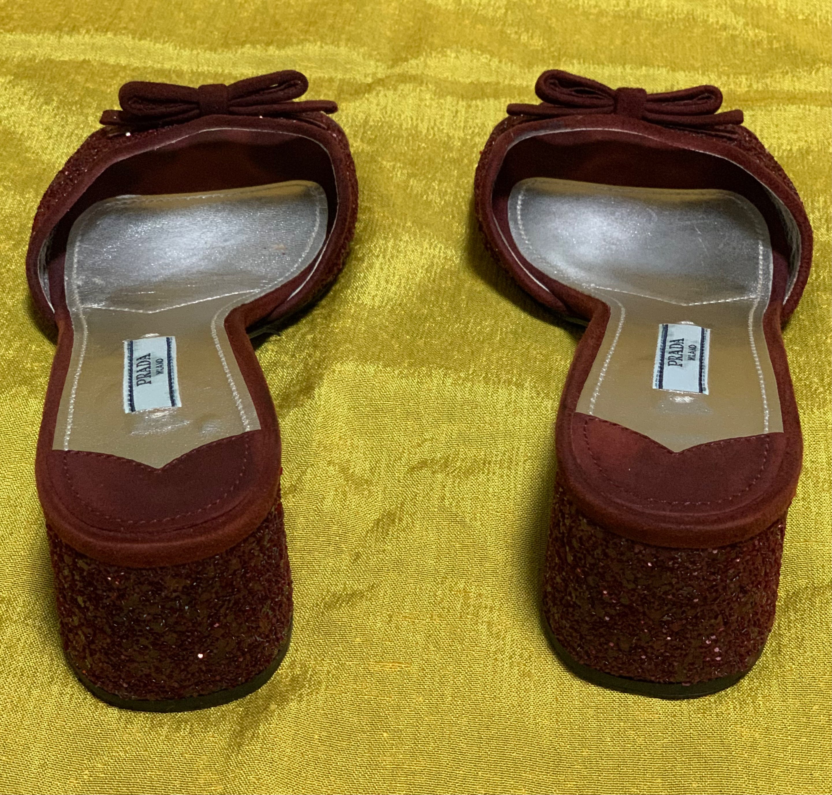 グリッターがぎっしり敷き詰められたようなザラザラ&キラキラした素材でできたサンダルです。リボンもついてフェミニンです。