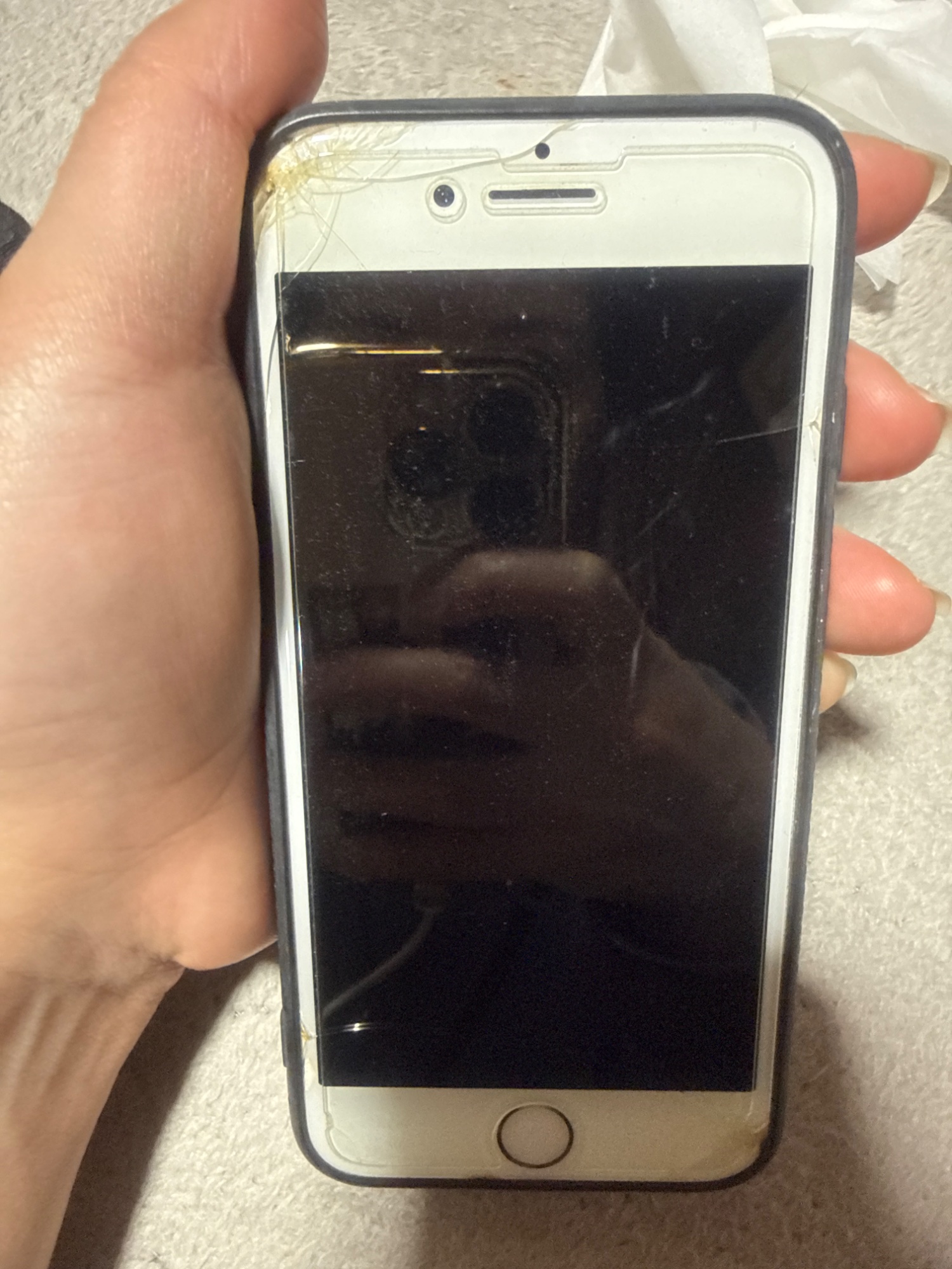確かではありませんが2019年頃に購入したと記憶してます。画面左上と右下に多少のひび割れあります。