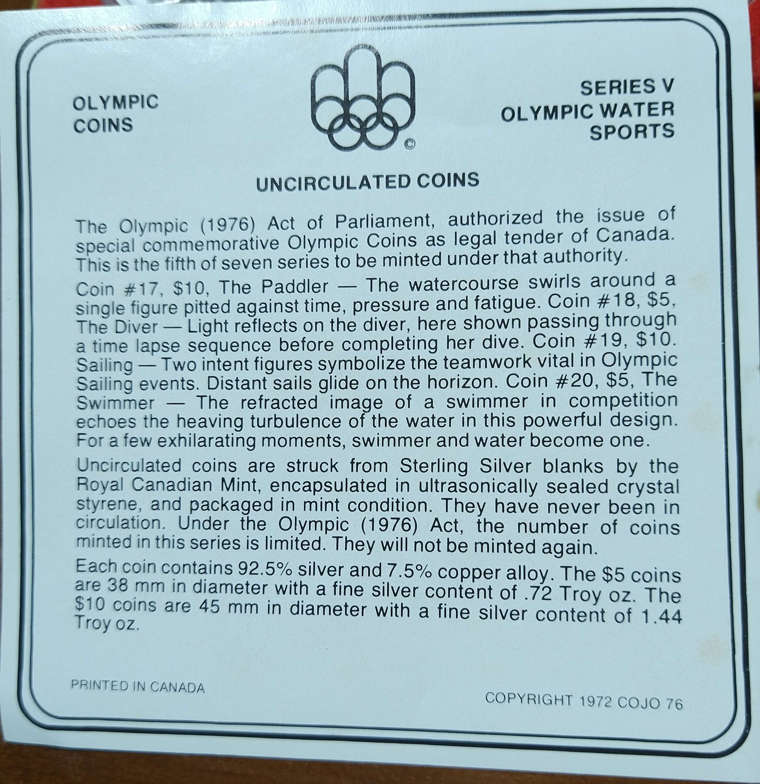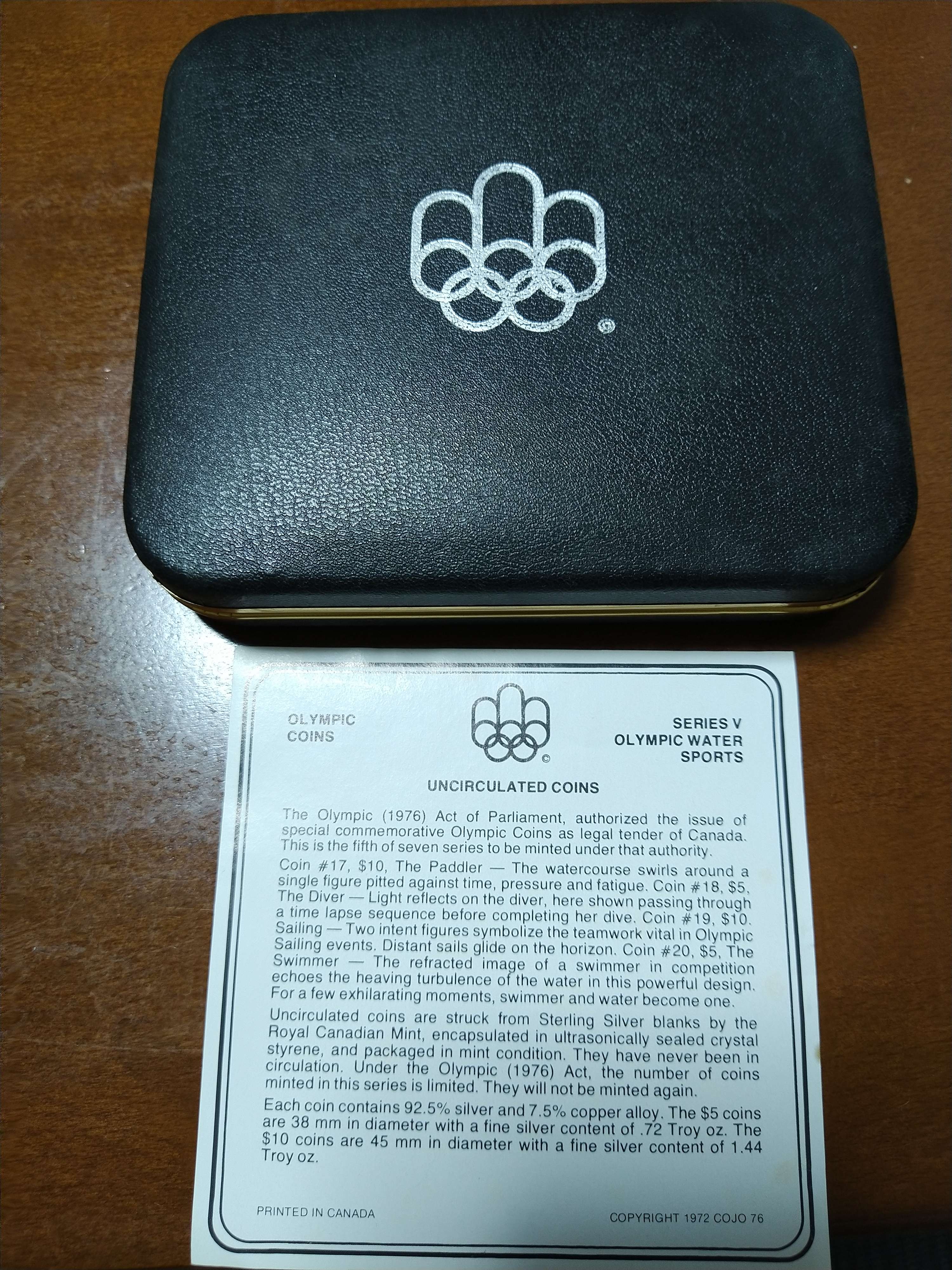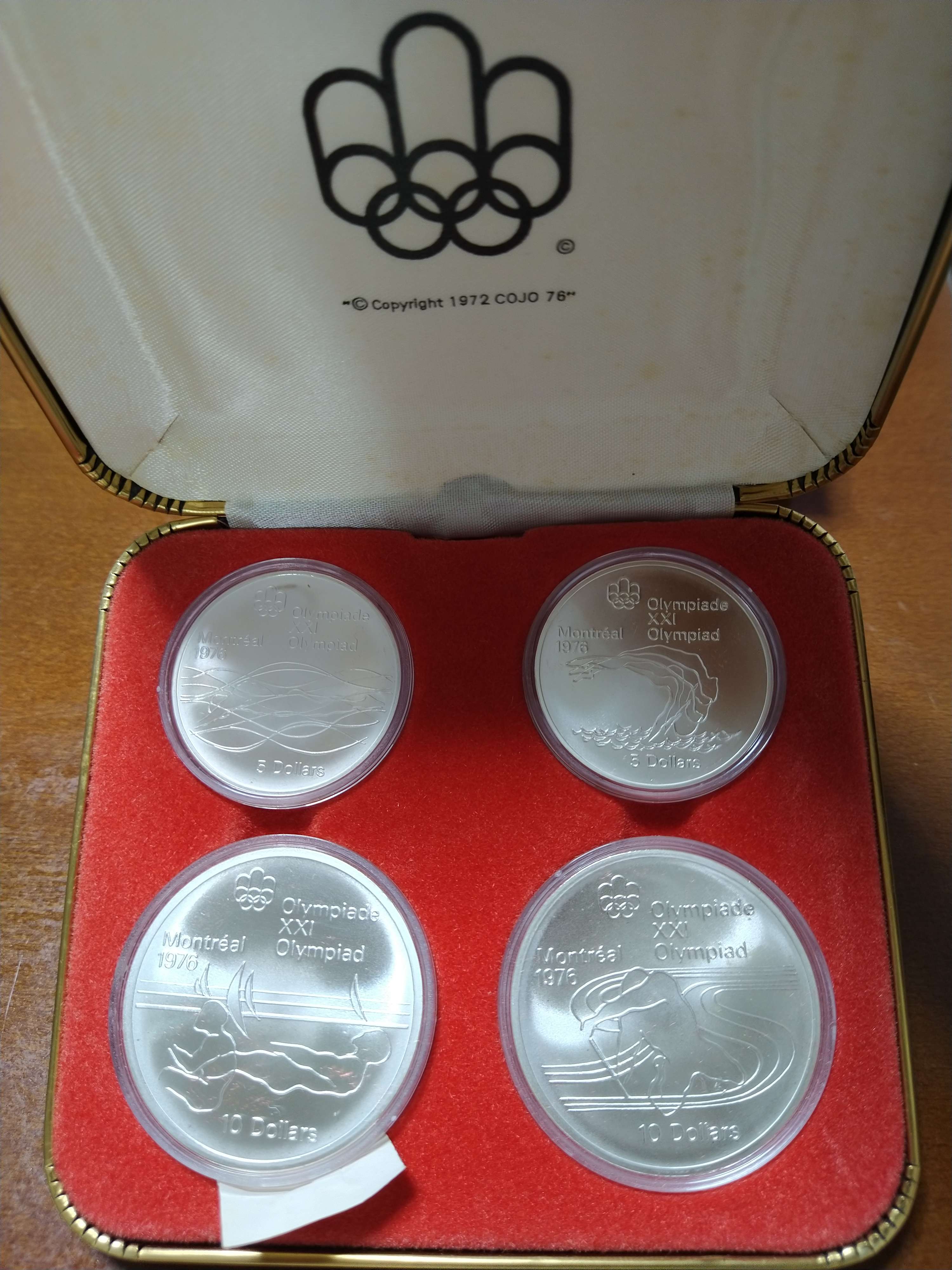 1976年購入時のまま保管。コインは5$10$各2枚ずつがプラスティックケースに入っているものをハードケースに収納。説明書付き。紙箱入り