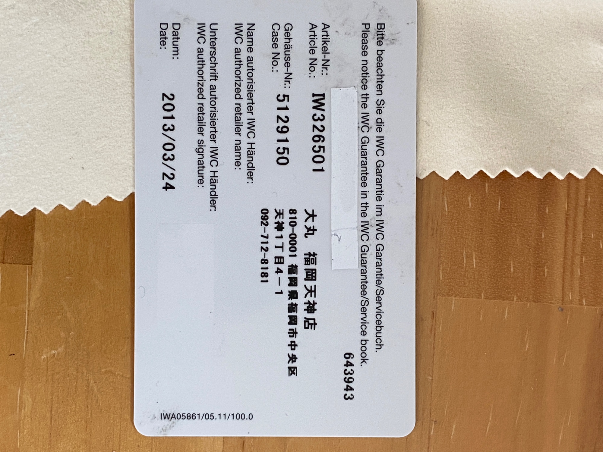 付属品 ギャランティーのみ