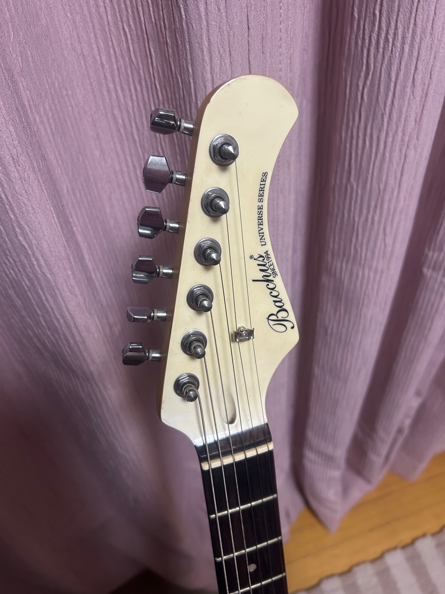 (付属品)ギターストラップ、ギタースタンド (購入時期)2017年頃 (型番)Bacchus SINCE1994 UNIVERSE SERIES (説明書)無し (商品状態)傷、黄ばみ、錆有り。 通電〇、歪み無し。(利用頻度)年1〜0
