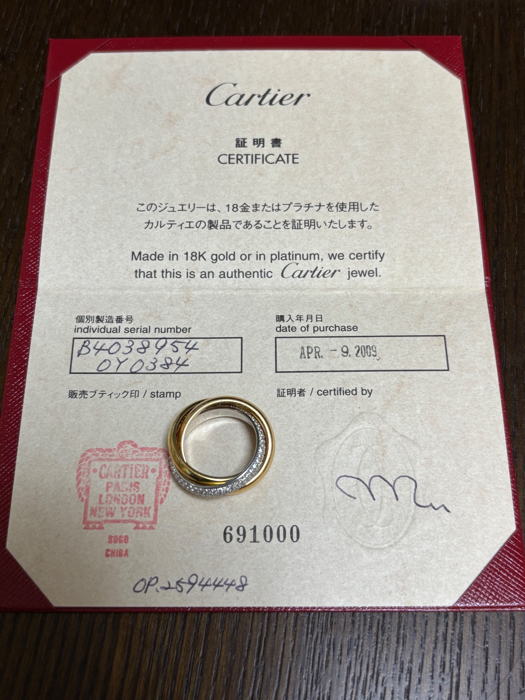 証明書、箱あり