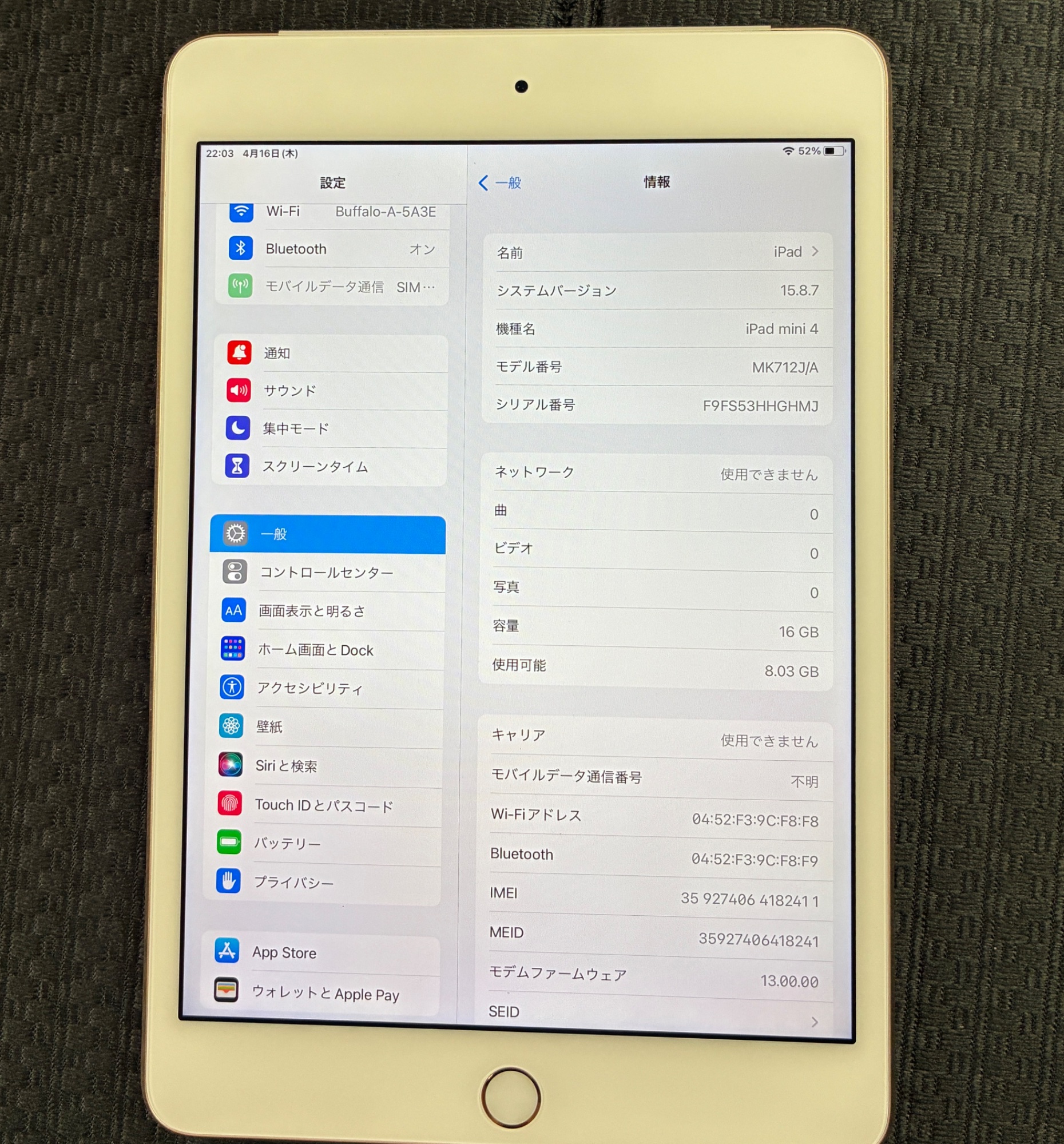 iPad mini4 16GBゴールド