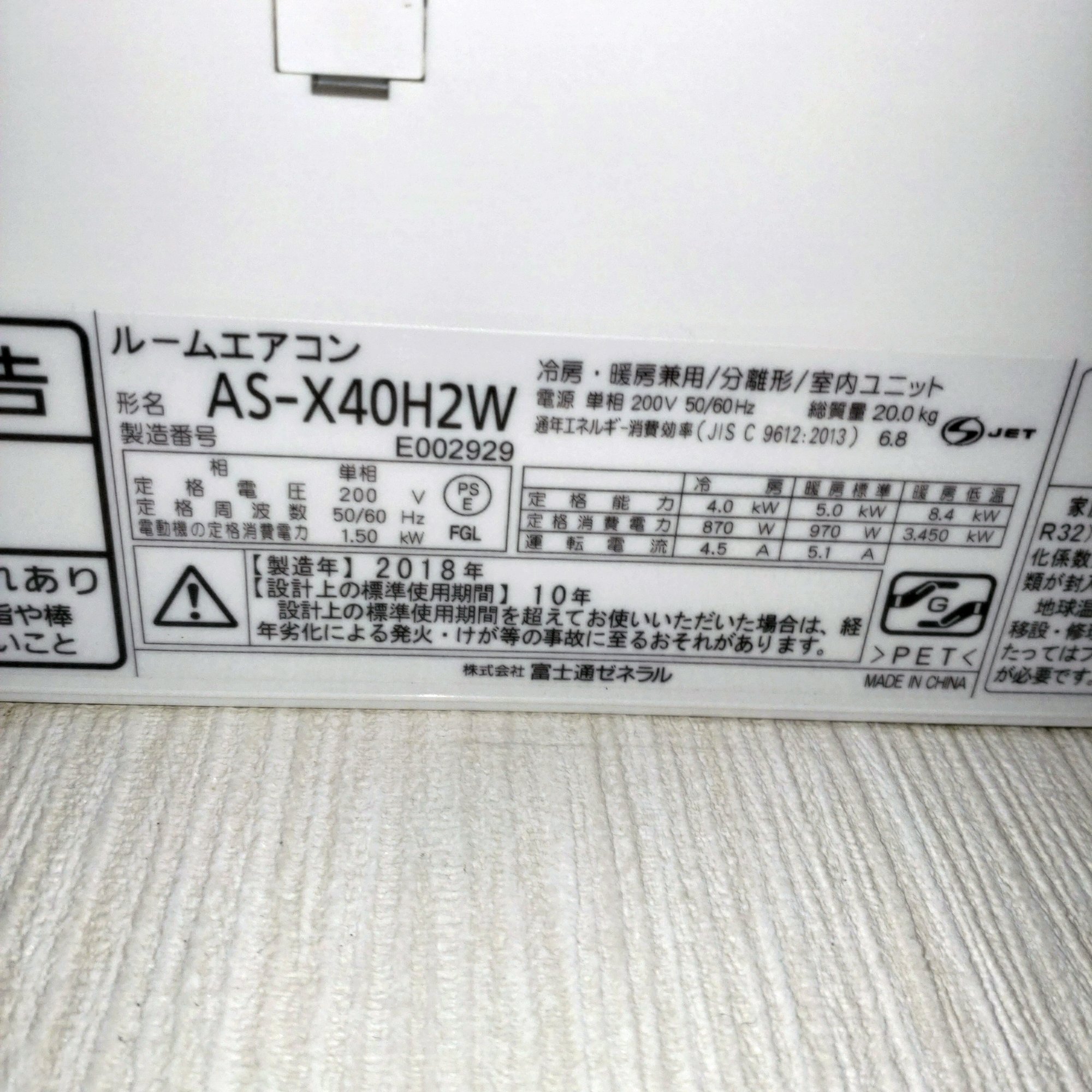 富士通 エアコン AS-X40H2W