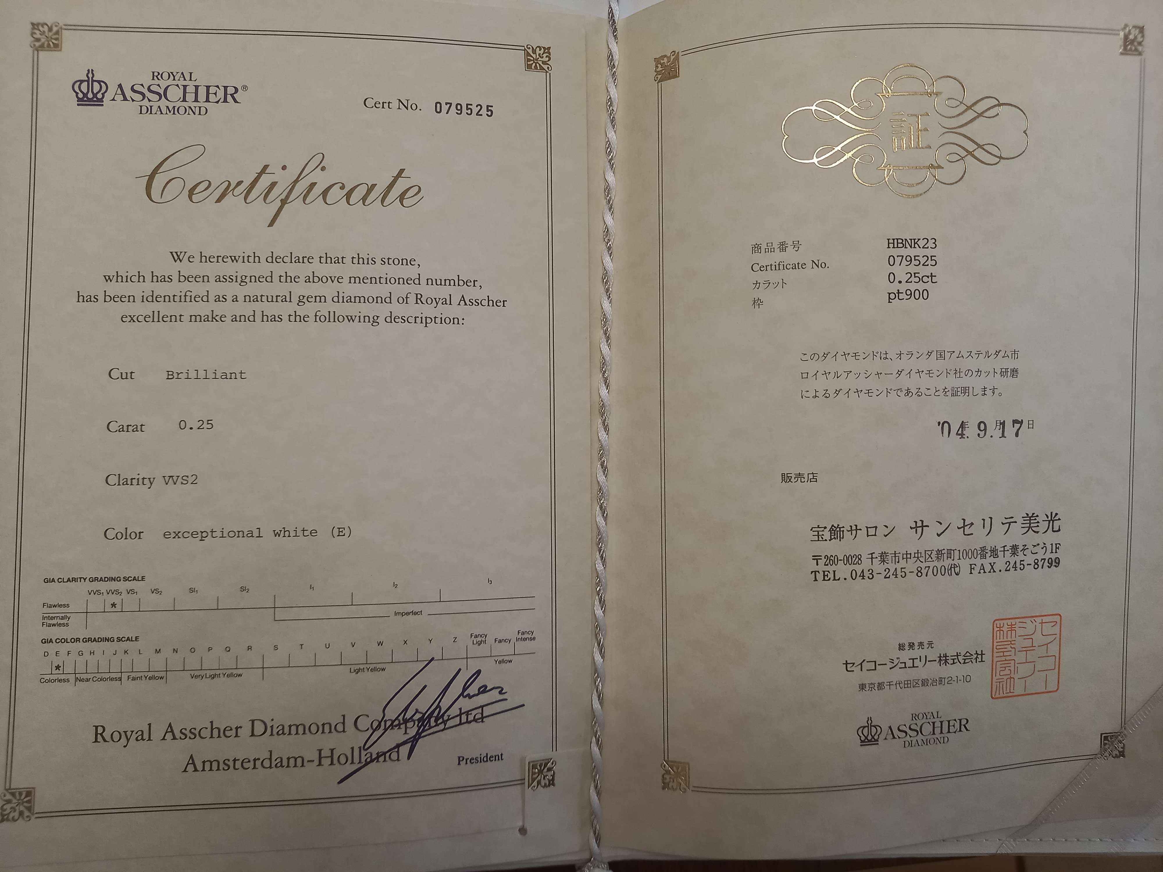 ロイヤルアッシャー0.25カラットの婚約指輪の買取査定価格・相場