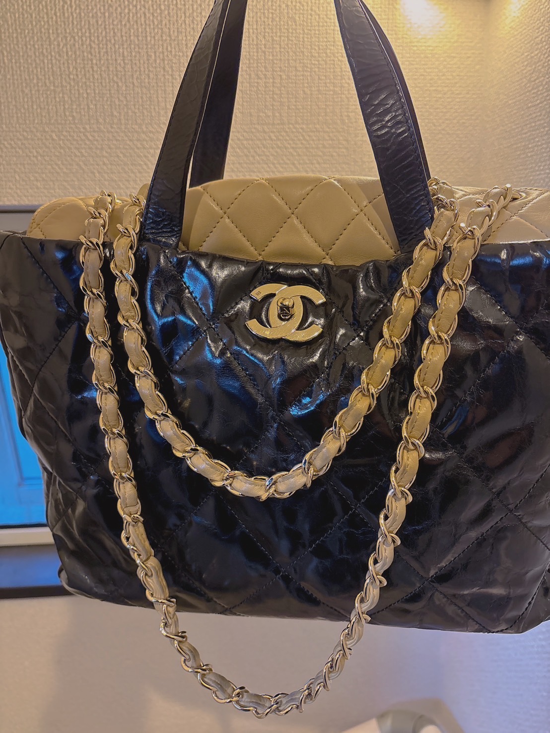 シャネル マトラッセ チェーンショルダーバッグ ブラック ラムスキン ゴールド金