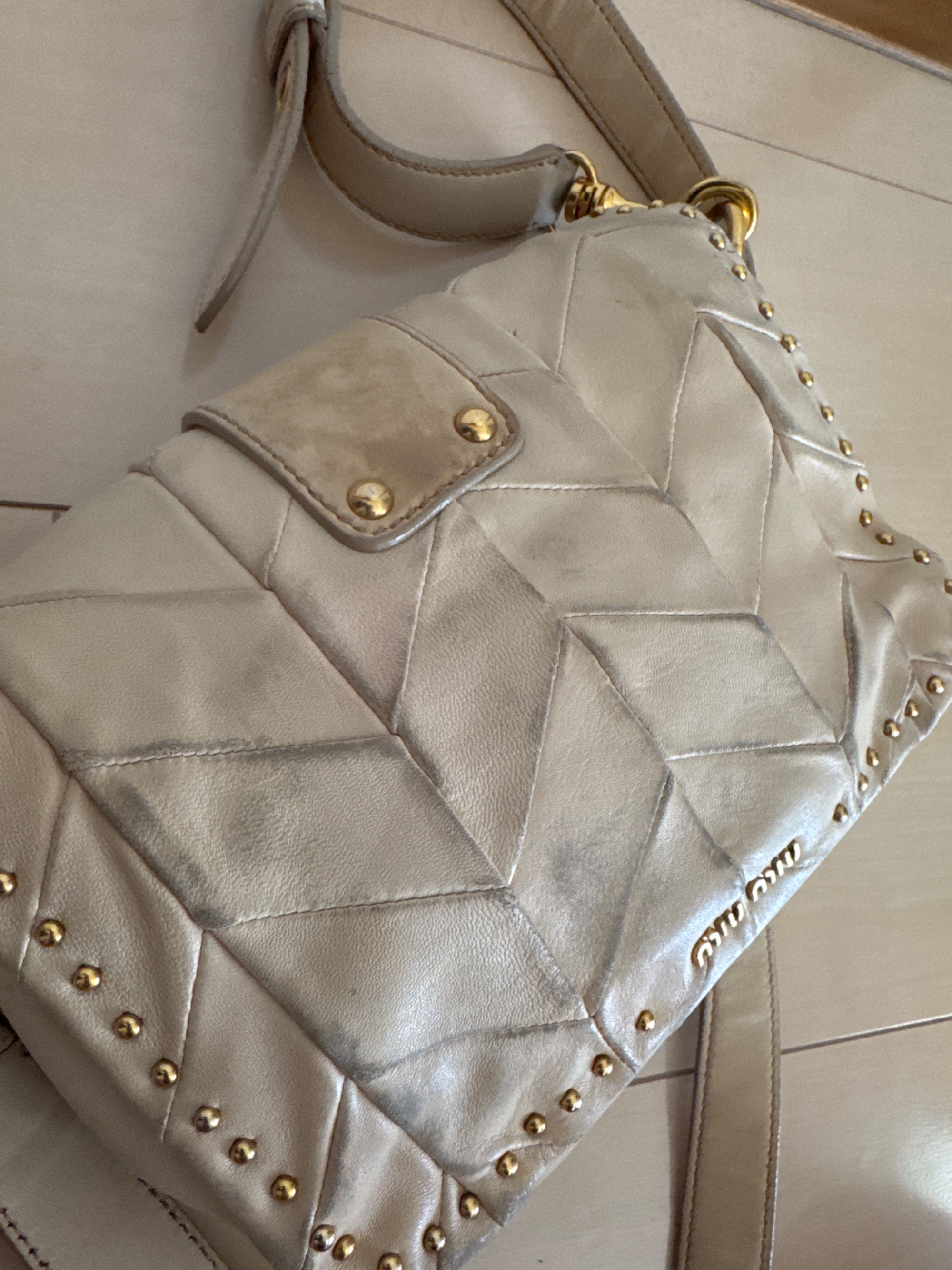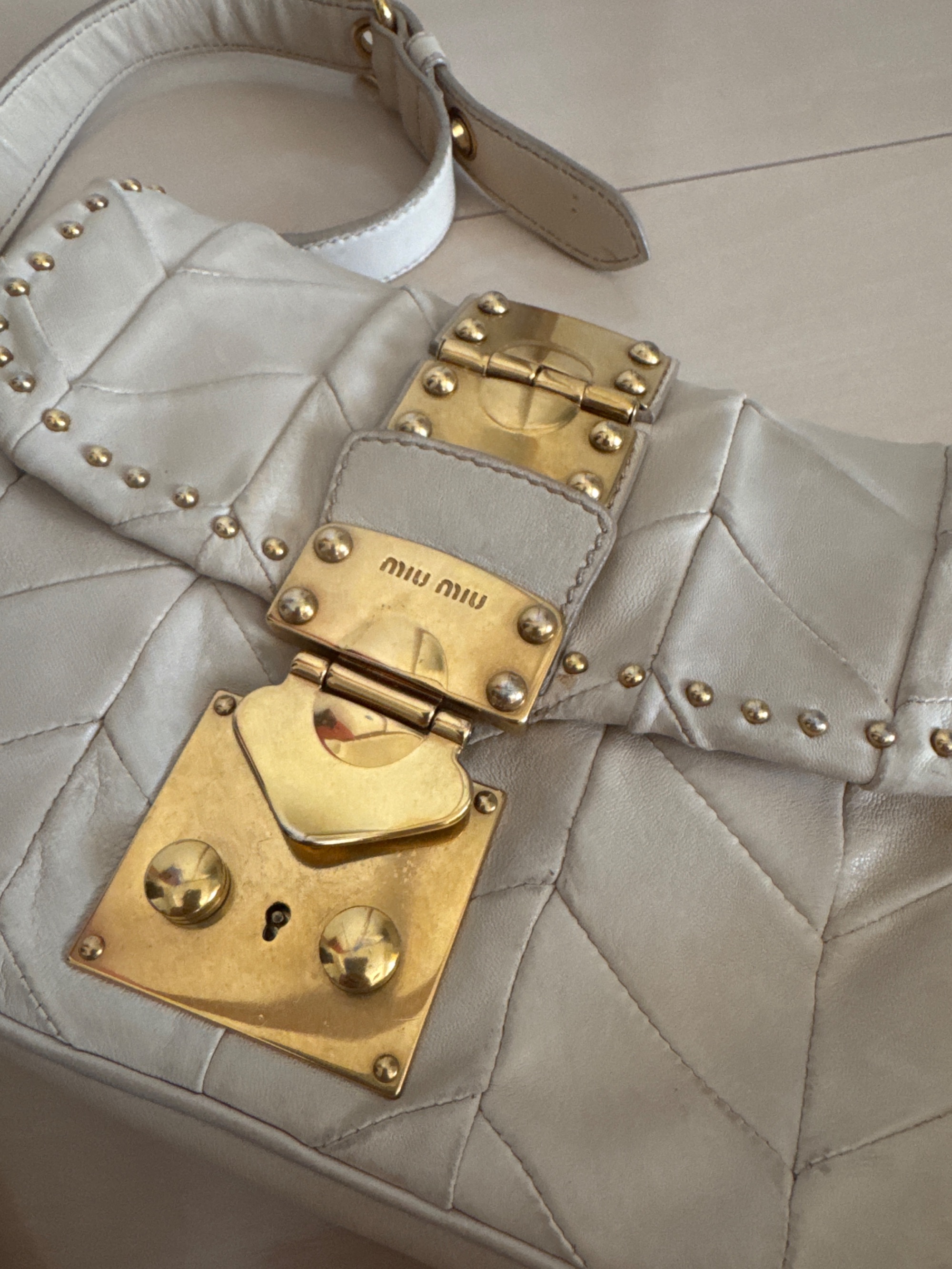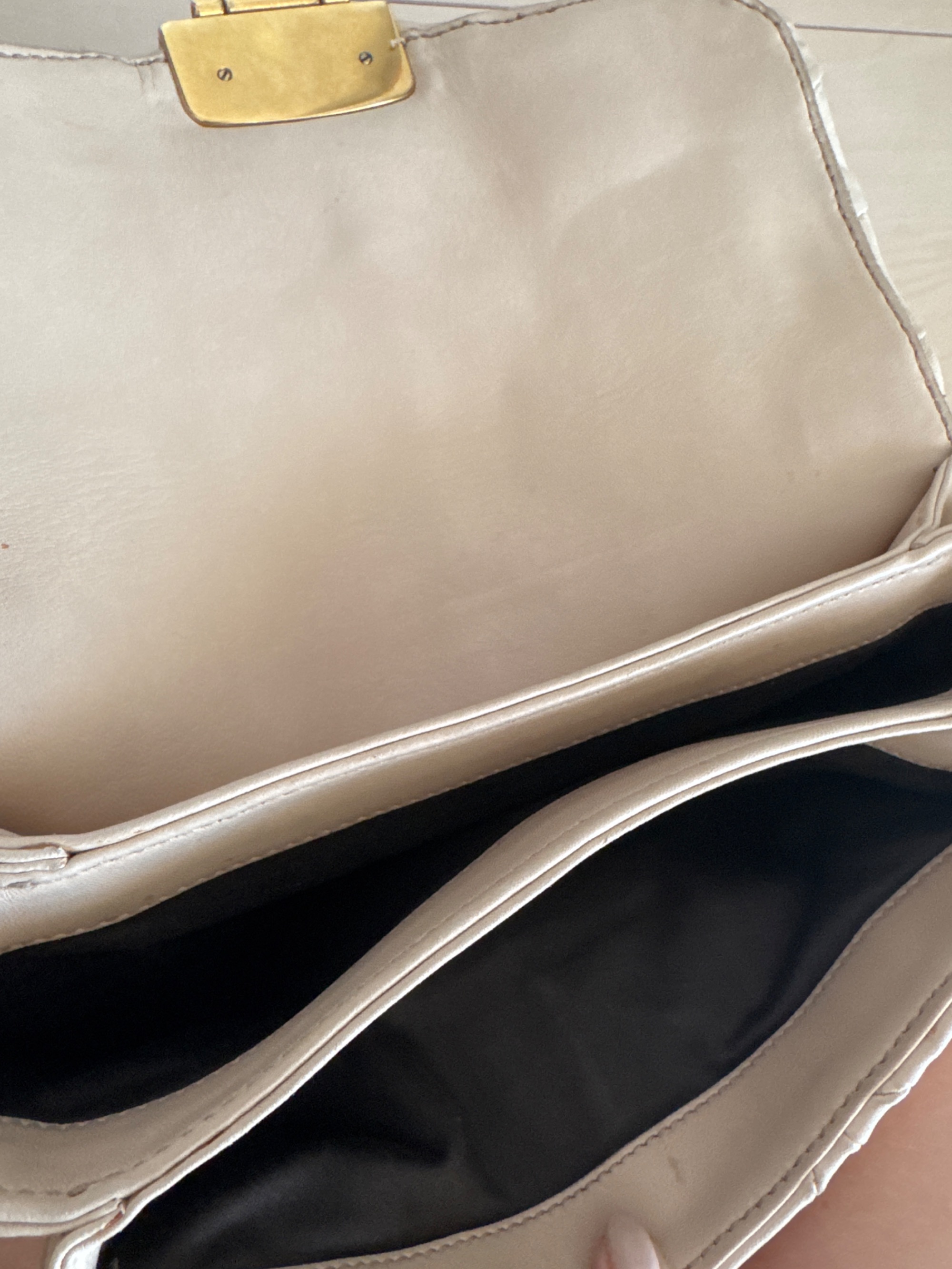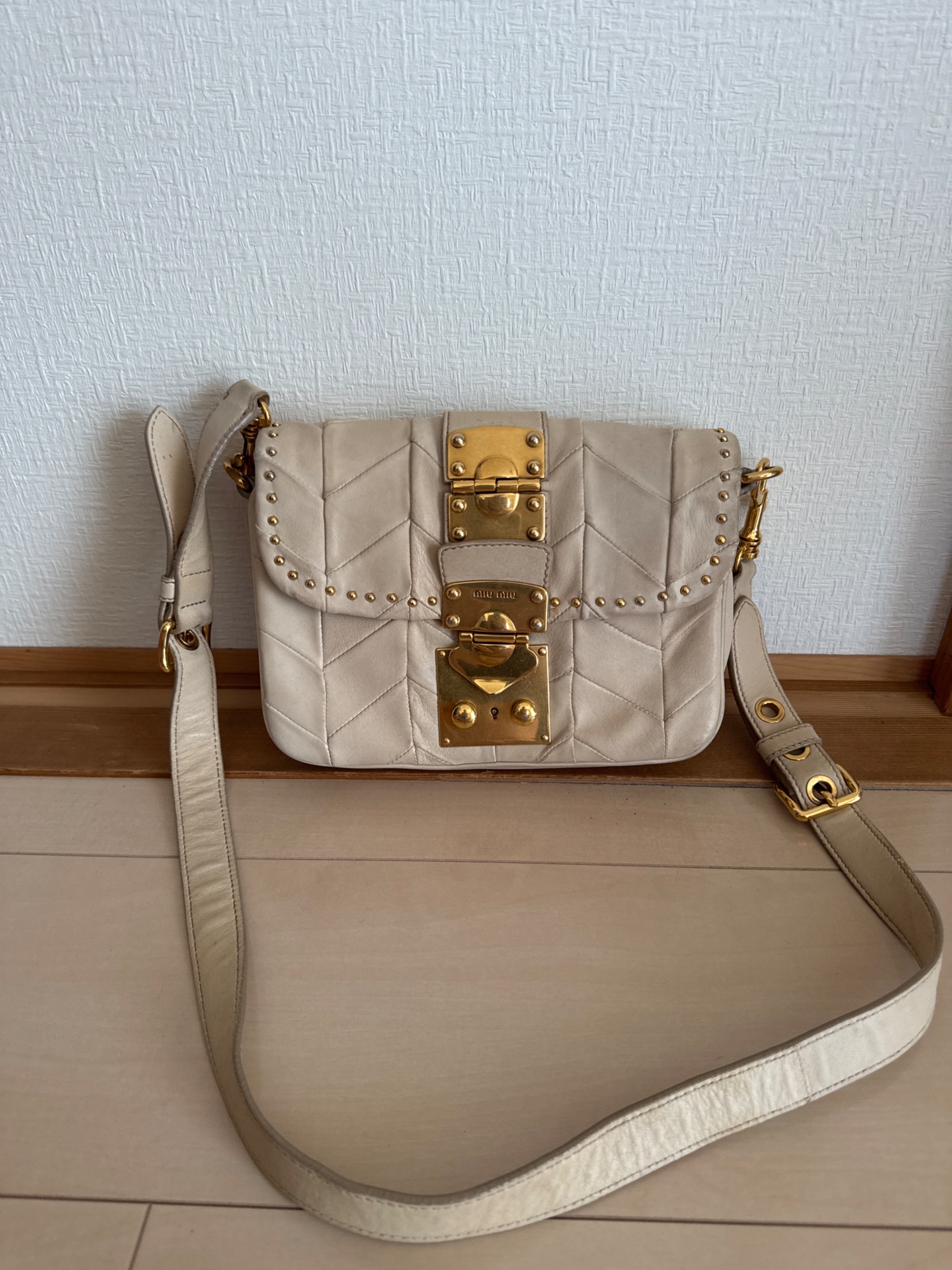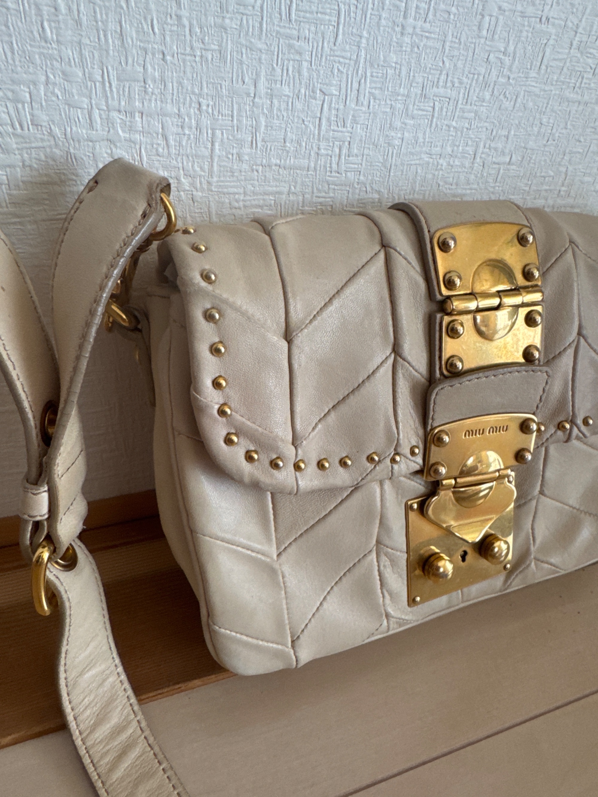 ベージュのショルダーバッグ、