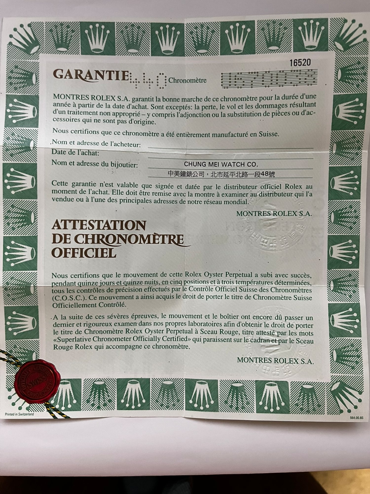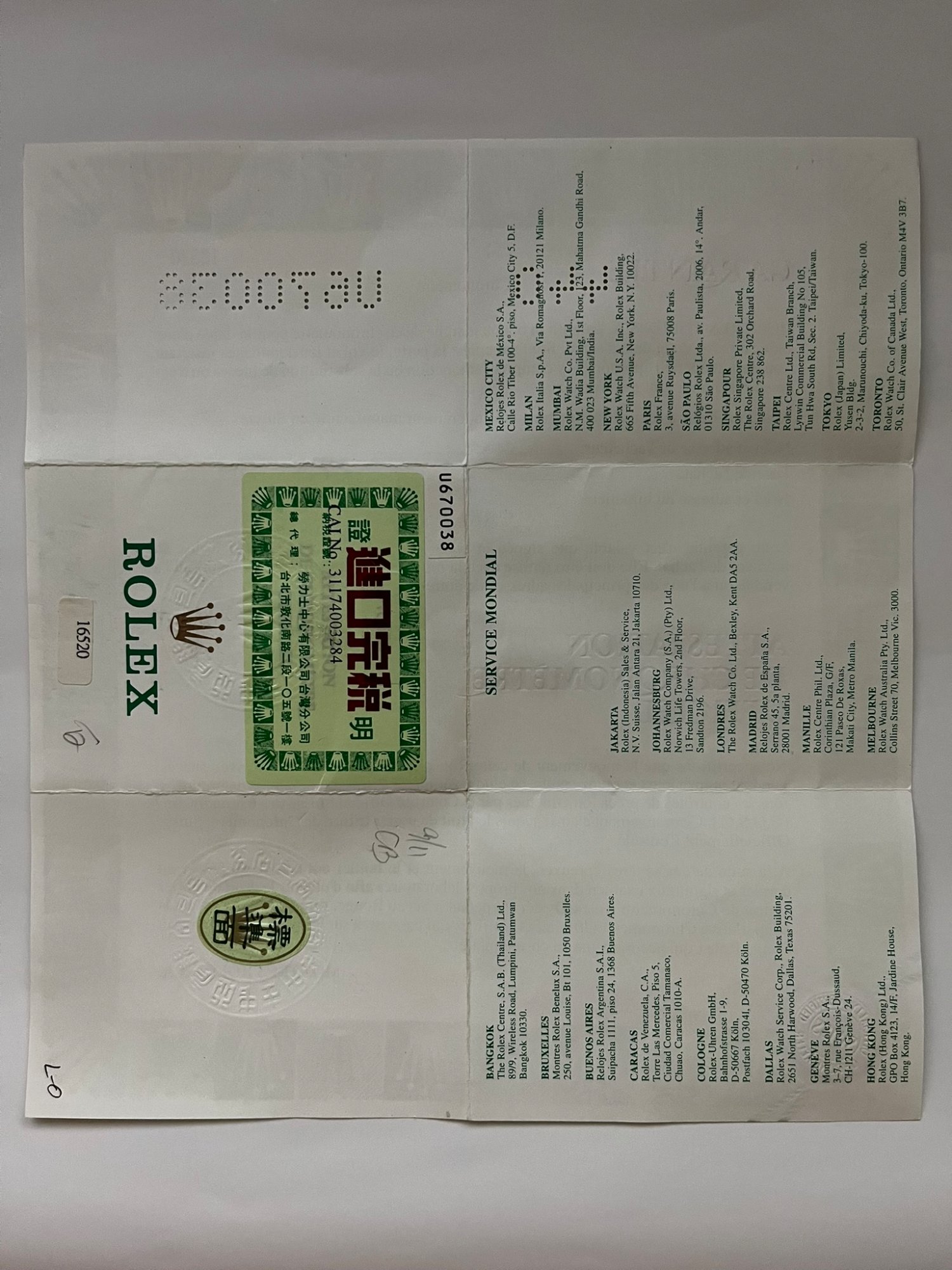 S/N U670038、1999年3月8日ビックカメラ本店購入、箱・付属品完備、純正白文字盤付属