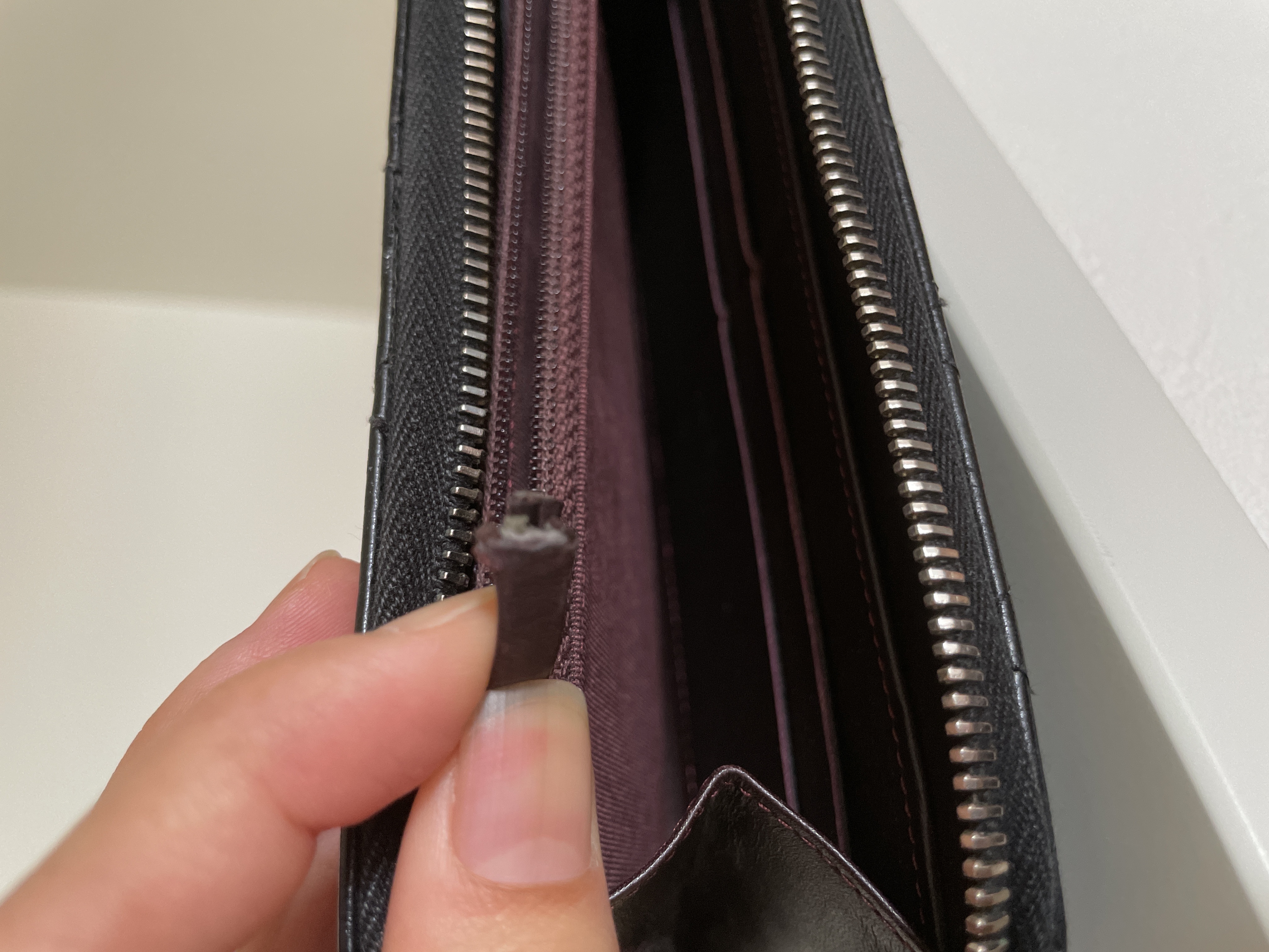 コインケースのジップの紐先が少しちぎれている