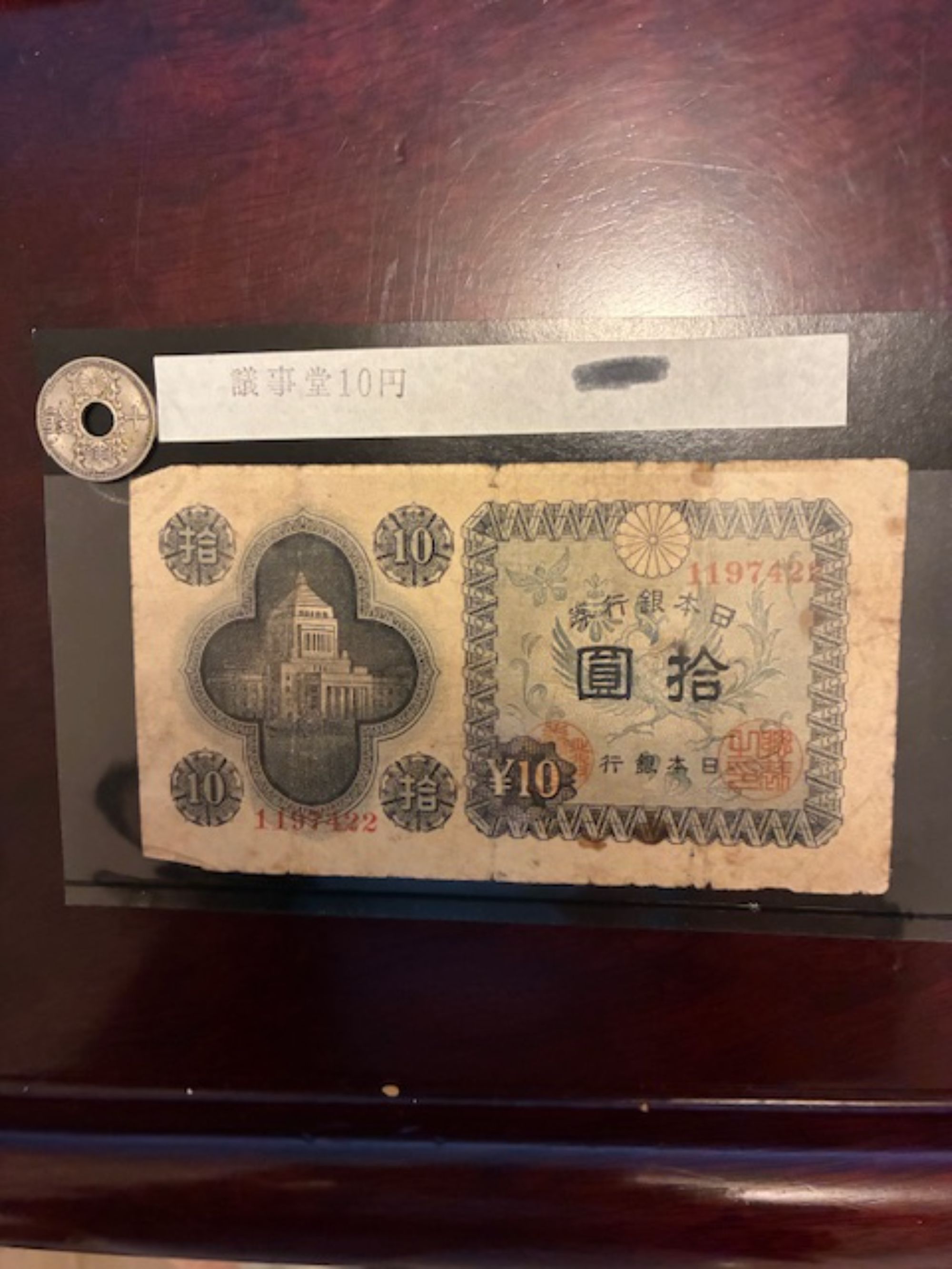 左 10円札はシミや古さがあります。