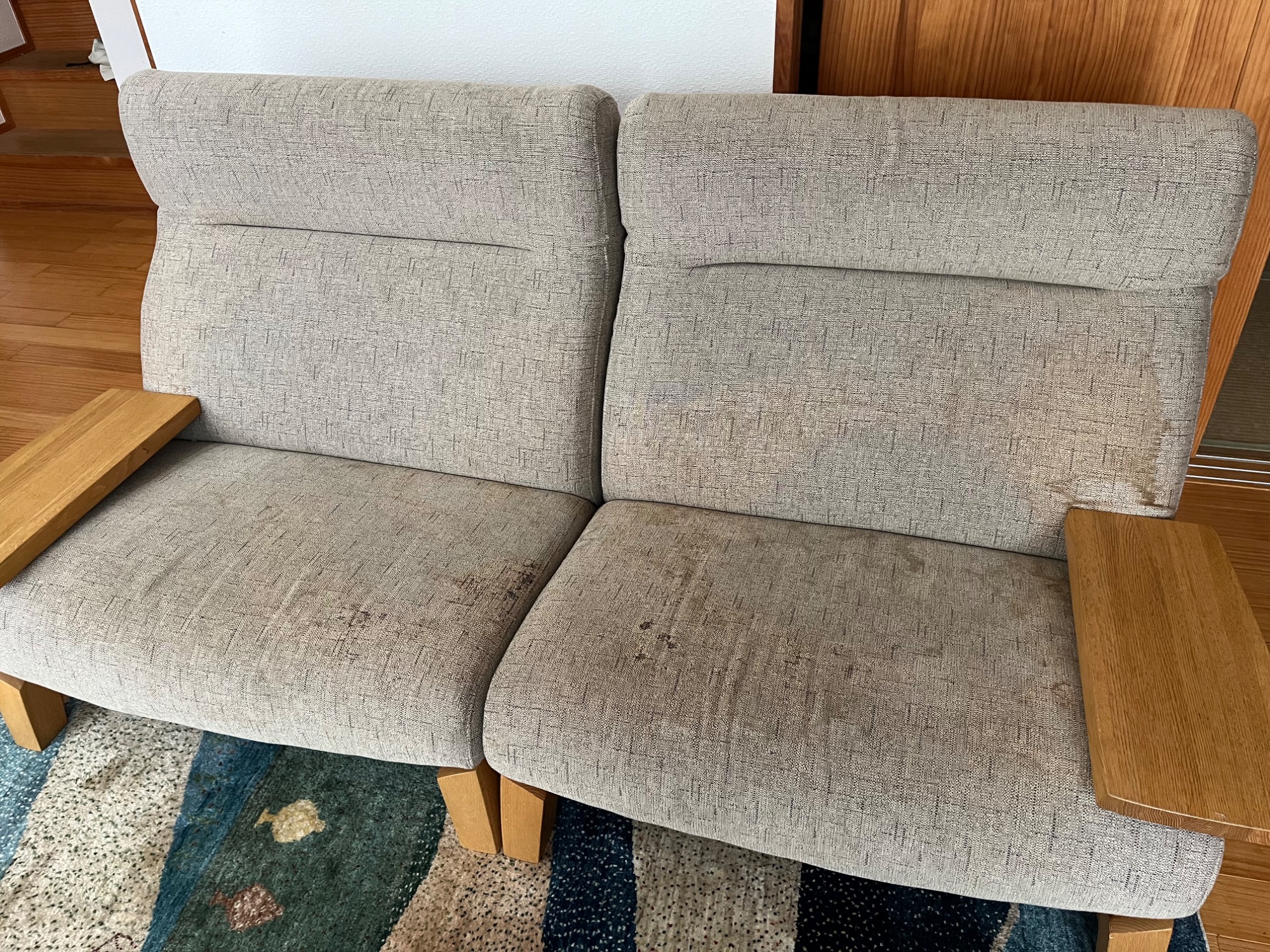 全体的に染みが広がり一部カバーが擦れてしまっているところもあります。