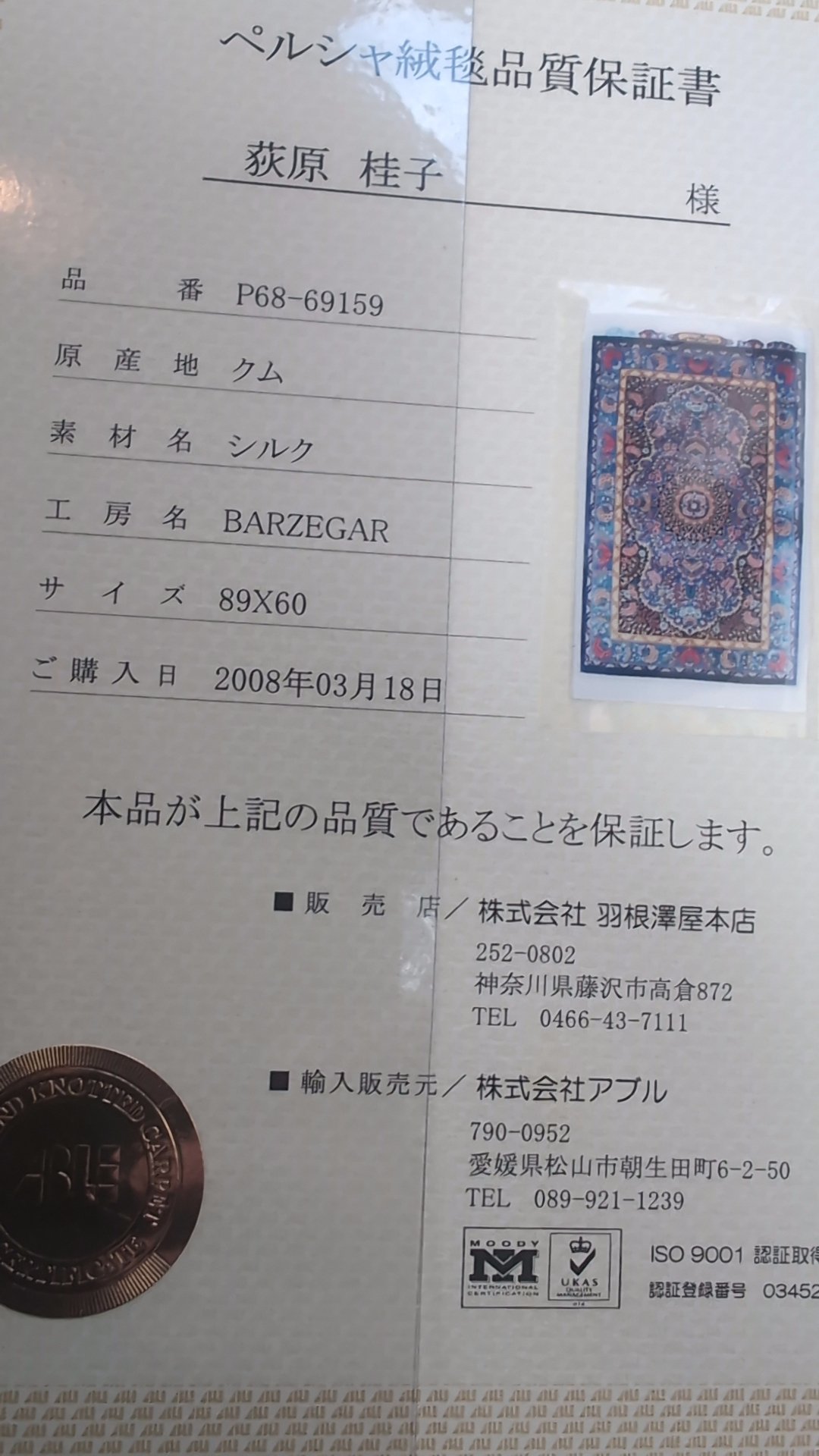 「ペルシャ絨毯」の買取査定価格