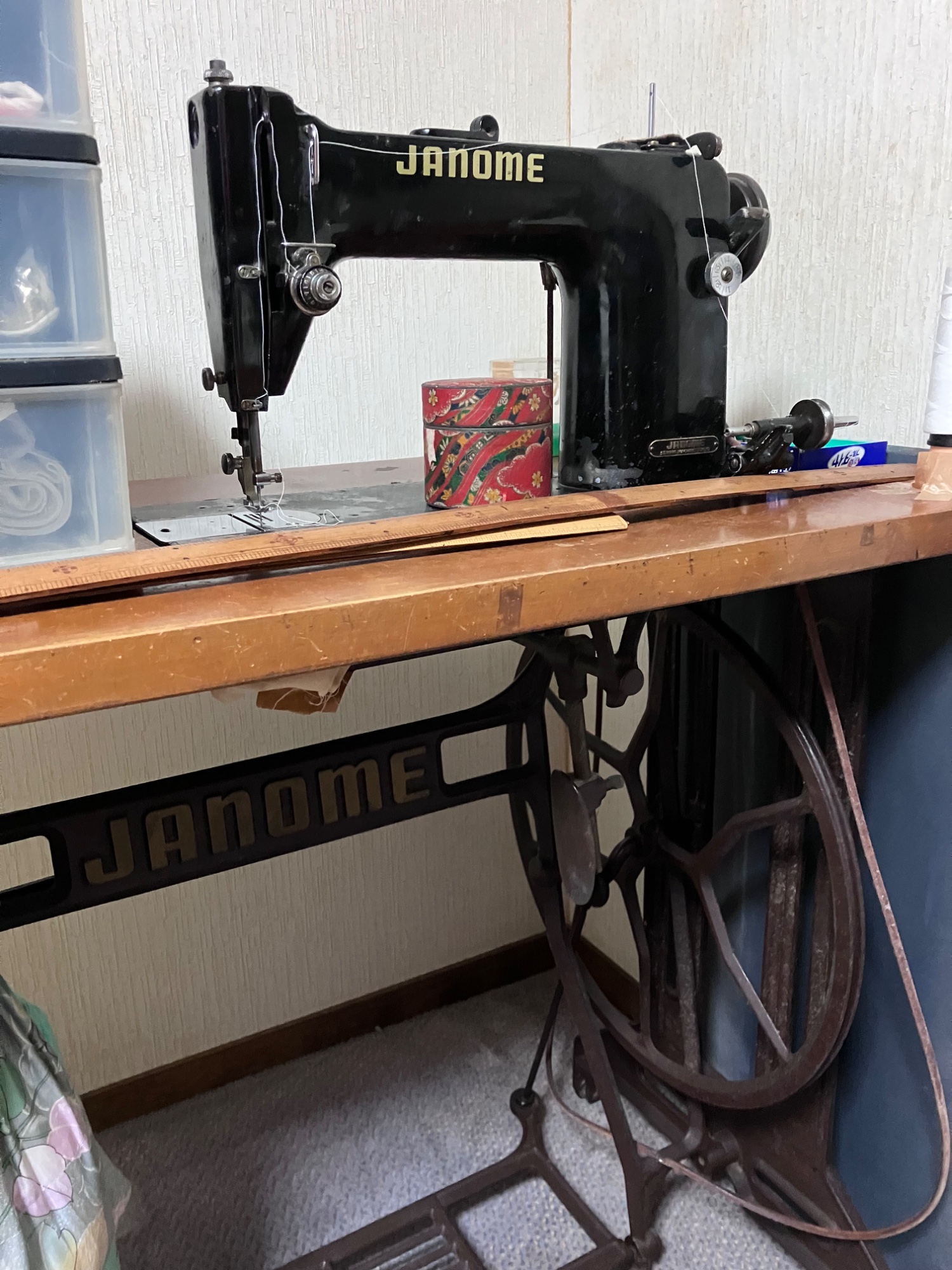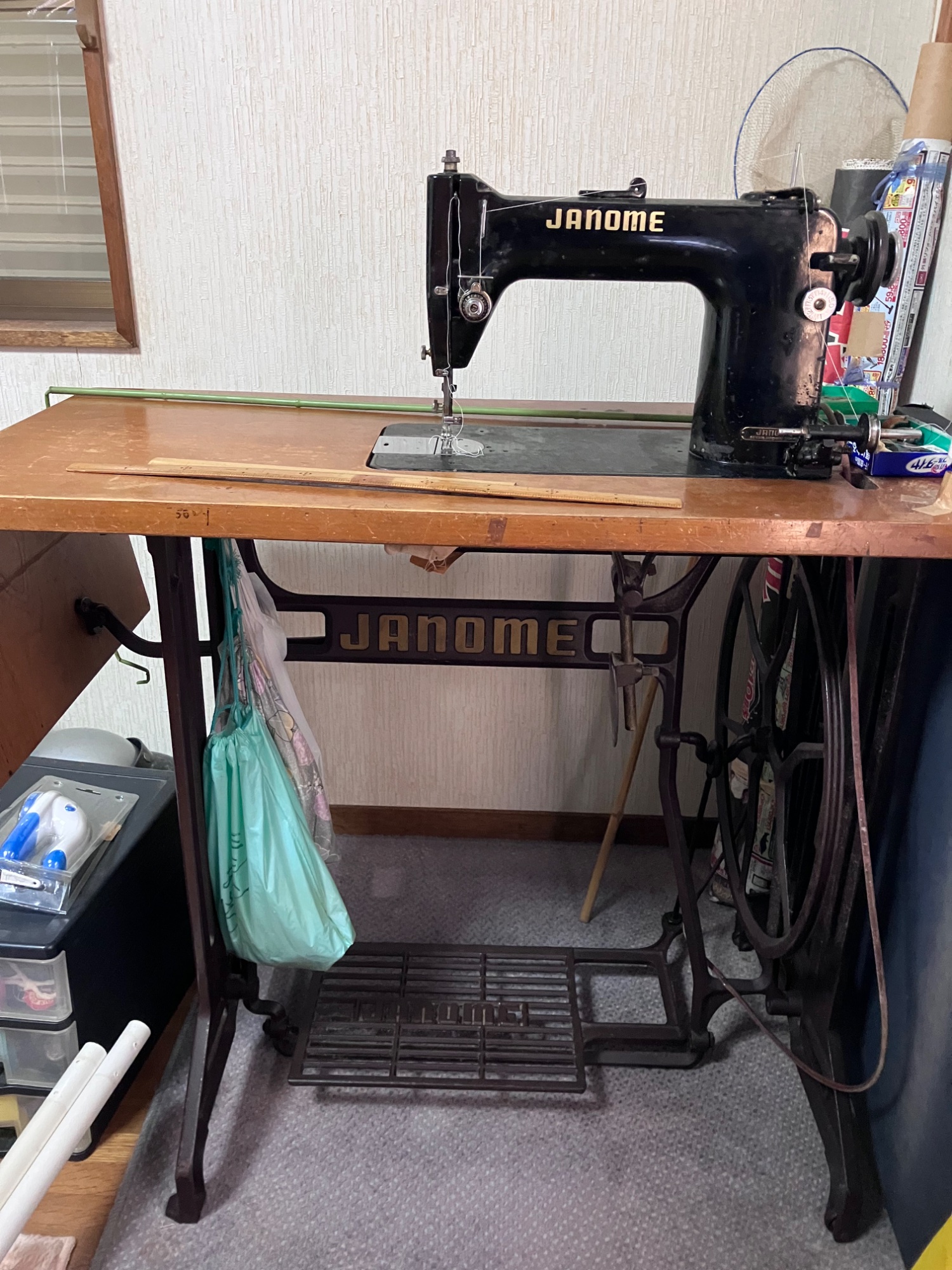 **「ジャノメの工業用(足踏み式)で、ロゴが入っている」**