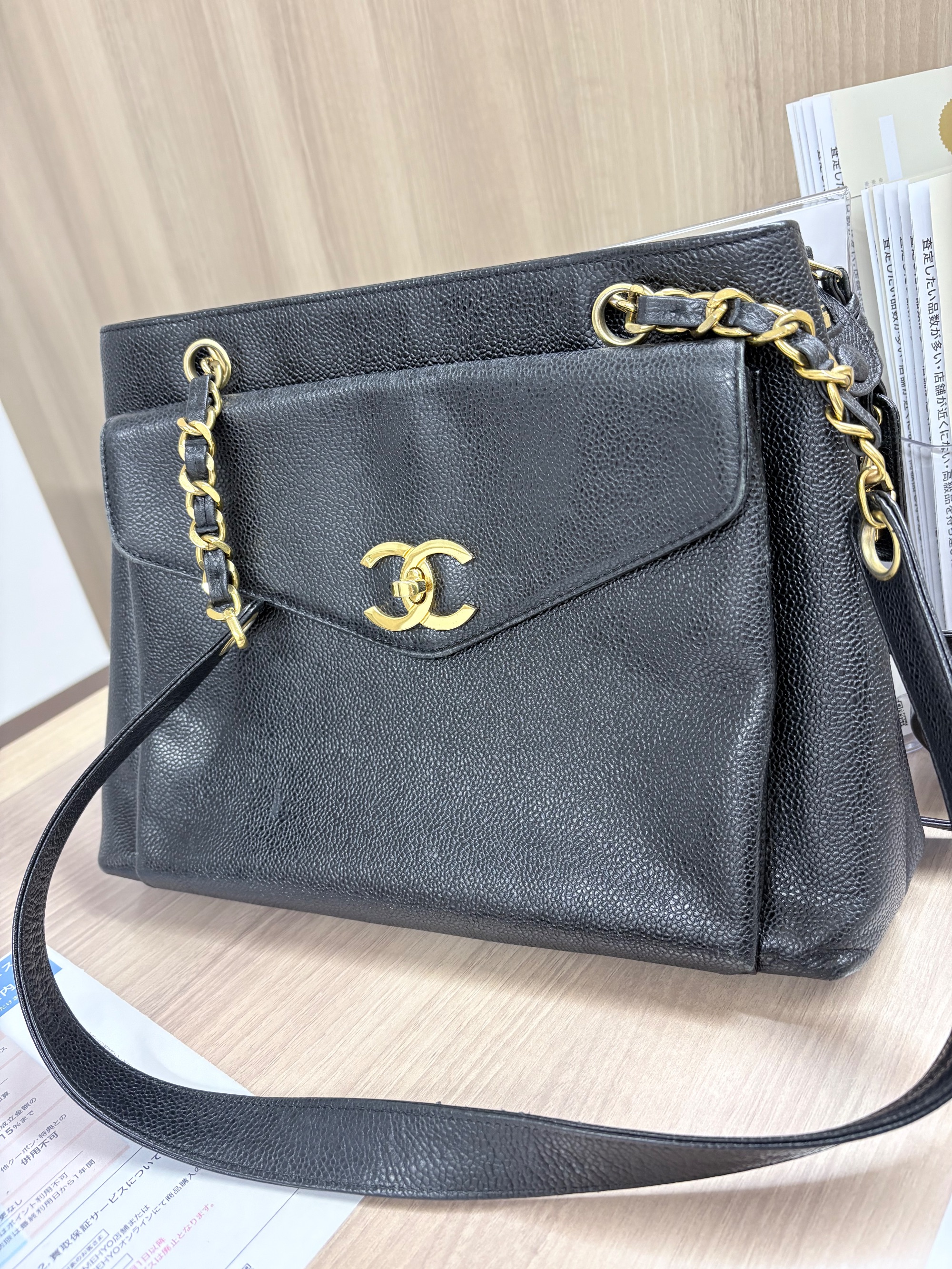 シャネルキャビアスキンショルダーバッグ30
