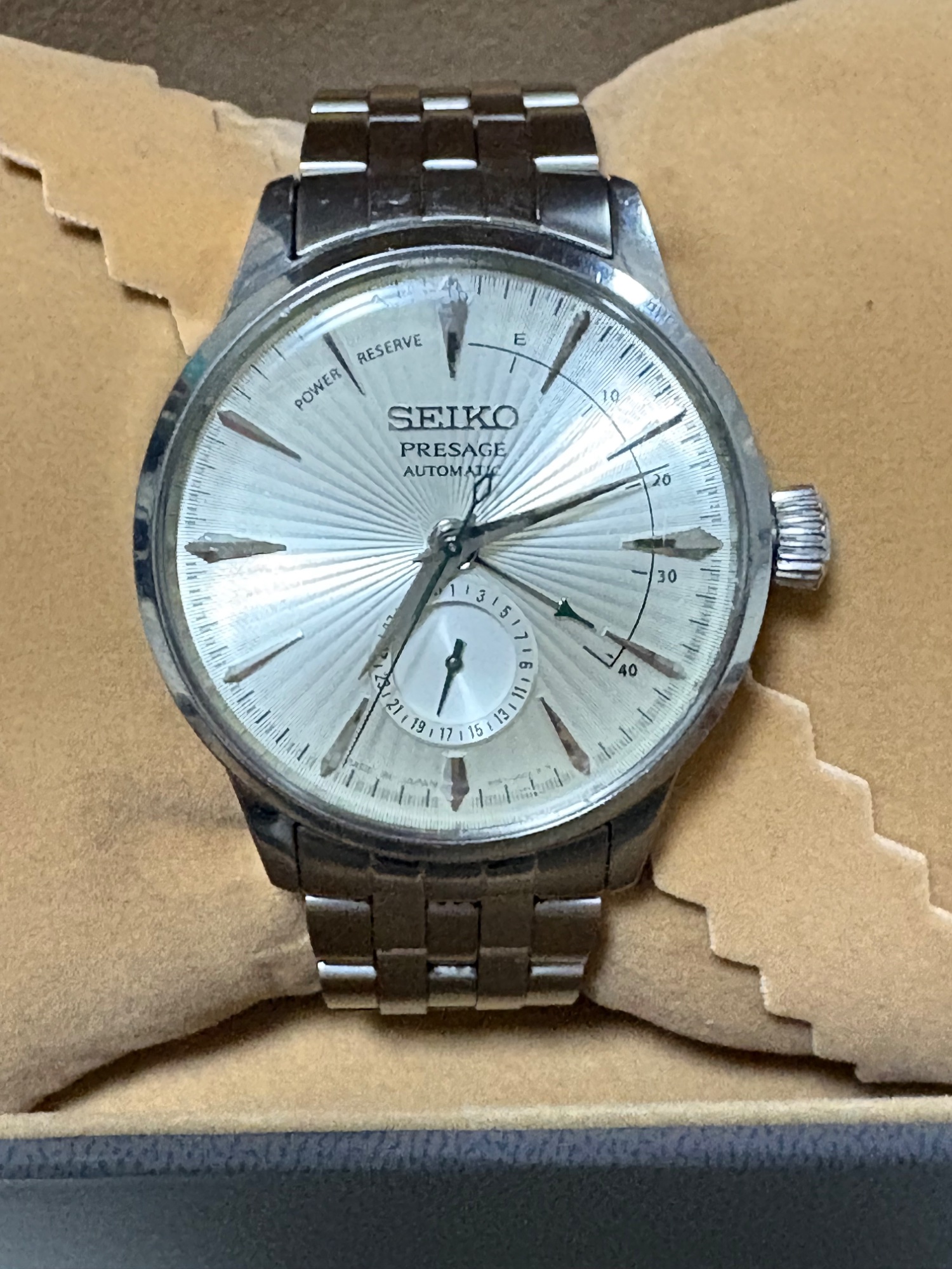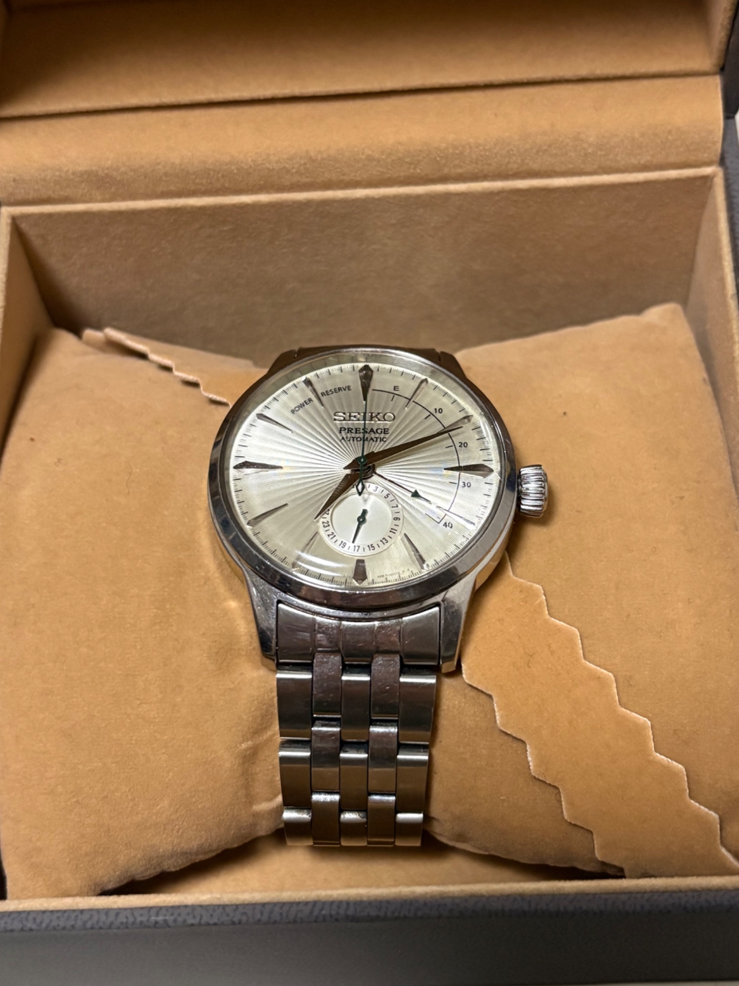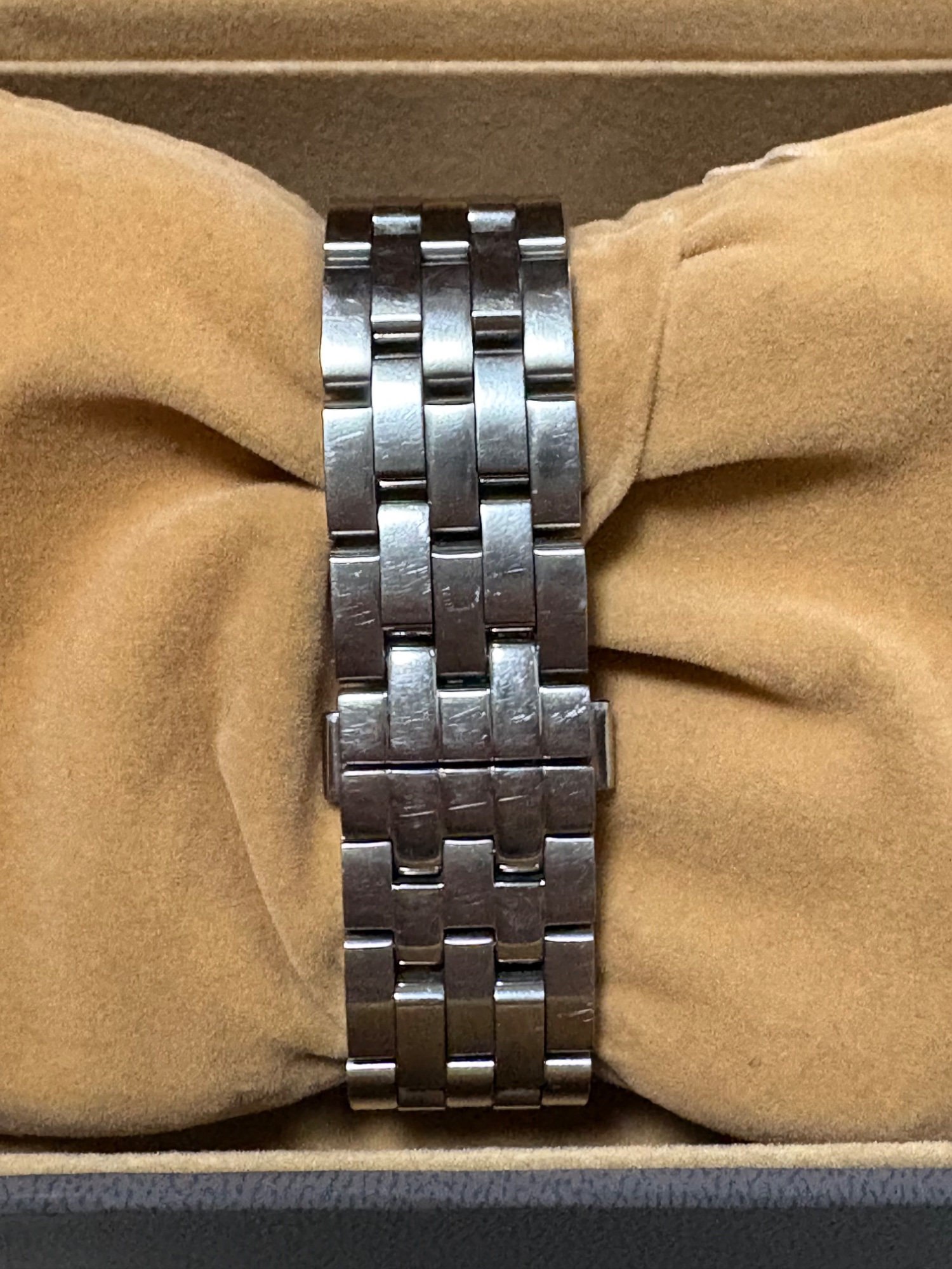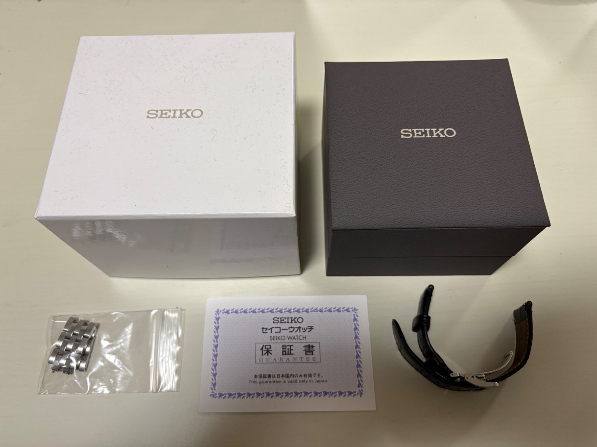 箱、保証書、コマ、別売純正革ベルト付き