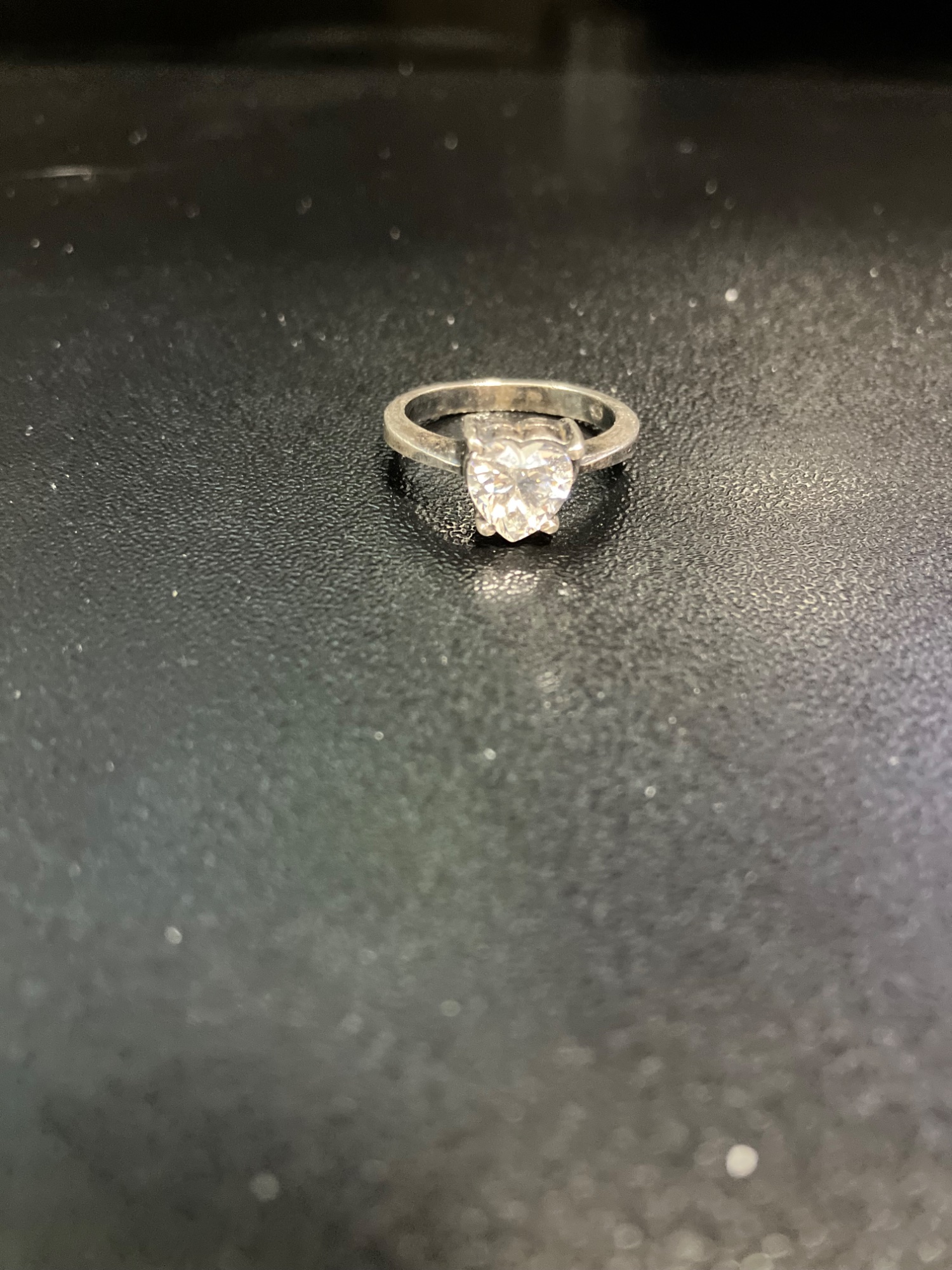 ハート型のダイヤモンドらしきシルバーリングだと思います。