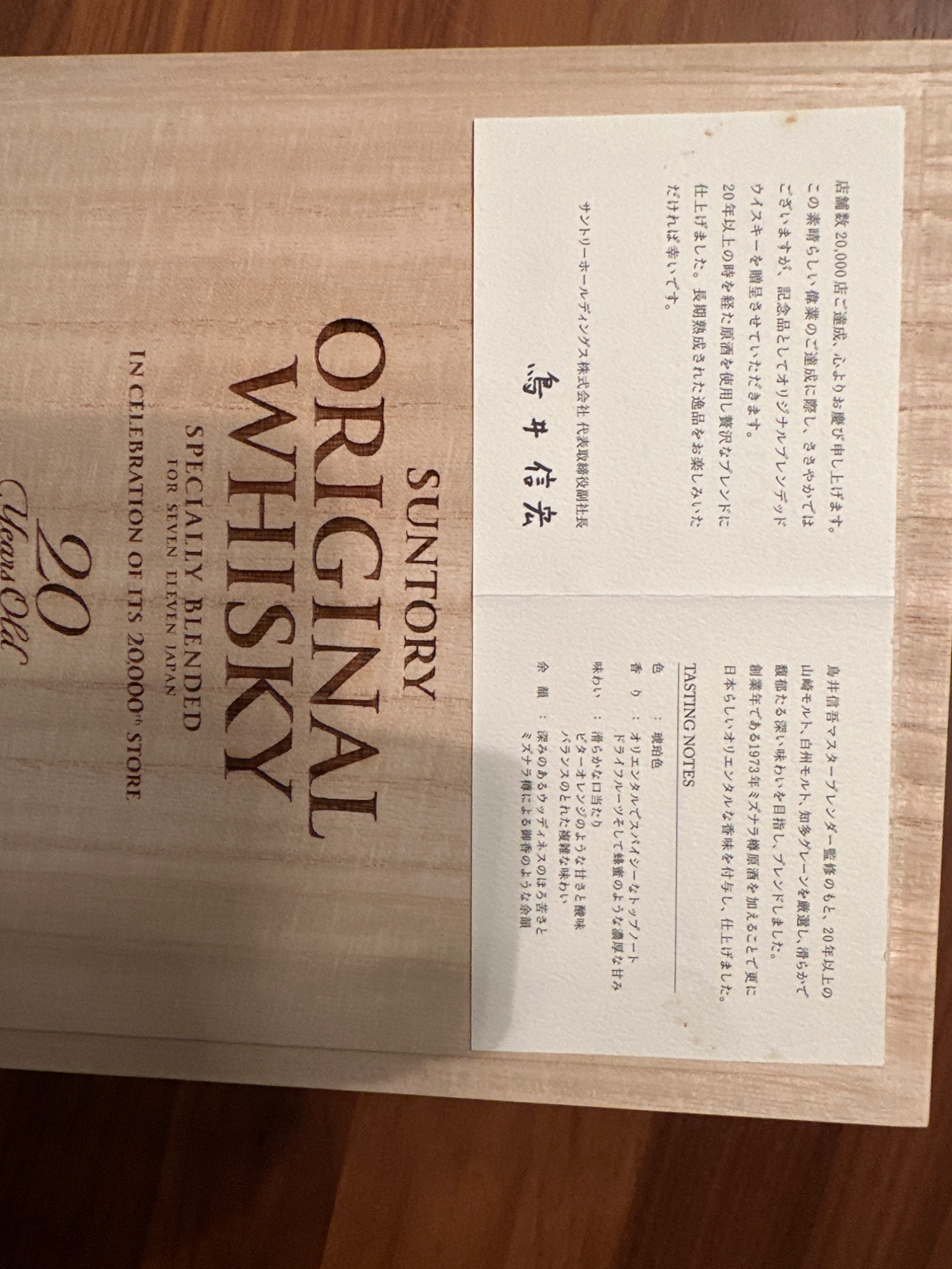 サントリー取締役副社長(3代目マスターブレンダー)である鳥井信吾氏が監修。20年以上の山崎モルト、白州モルト、知多グレーンを厳選しブレンドし、かつ1973年ミズナラ樽原酒を加えて仕上げた一品。