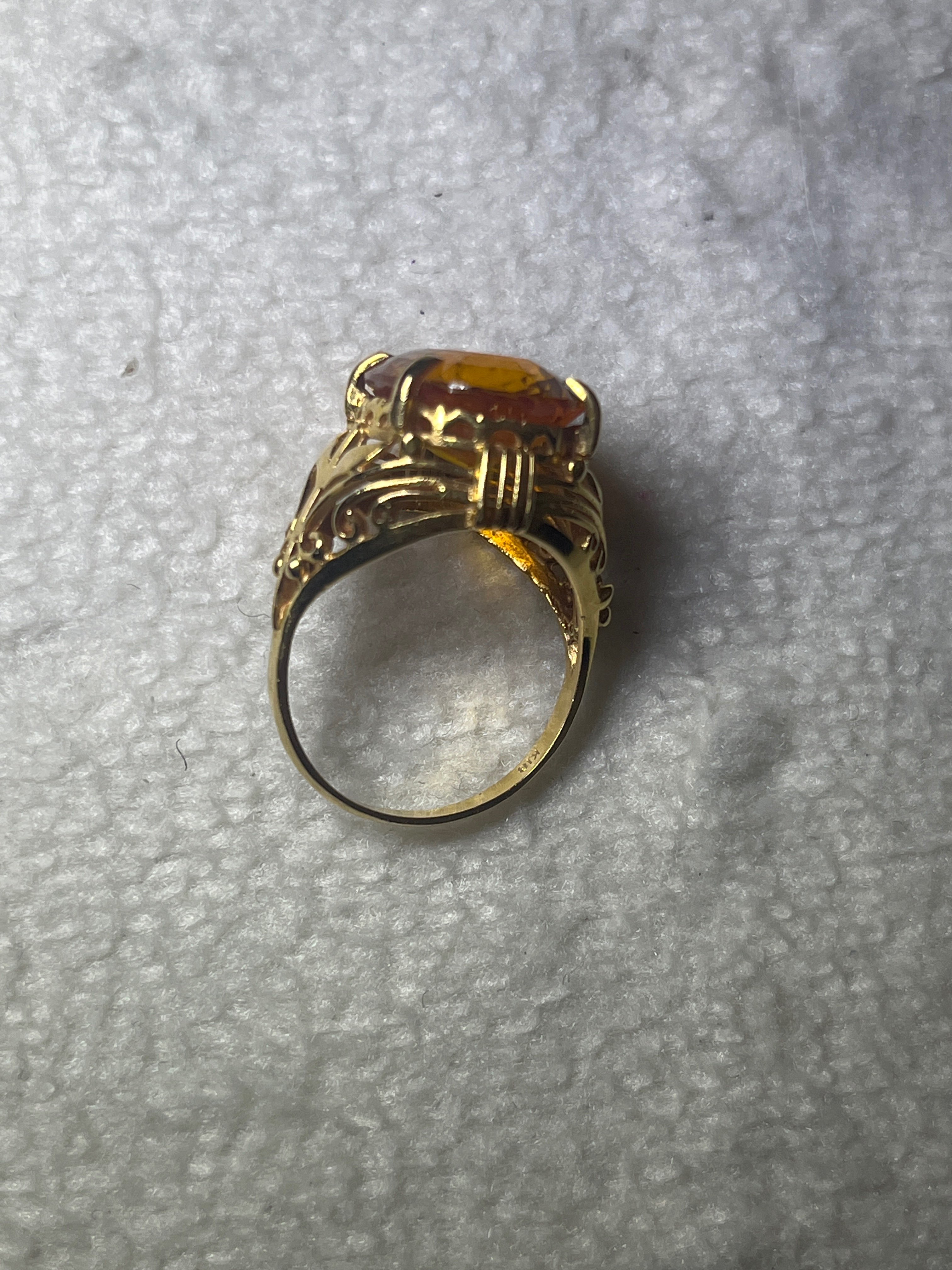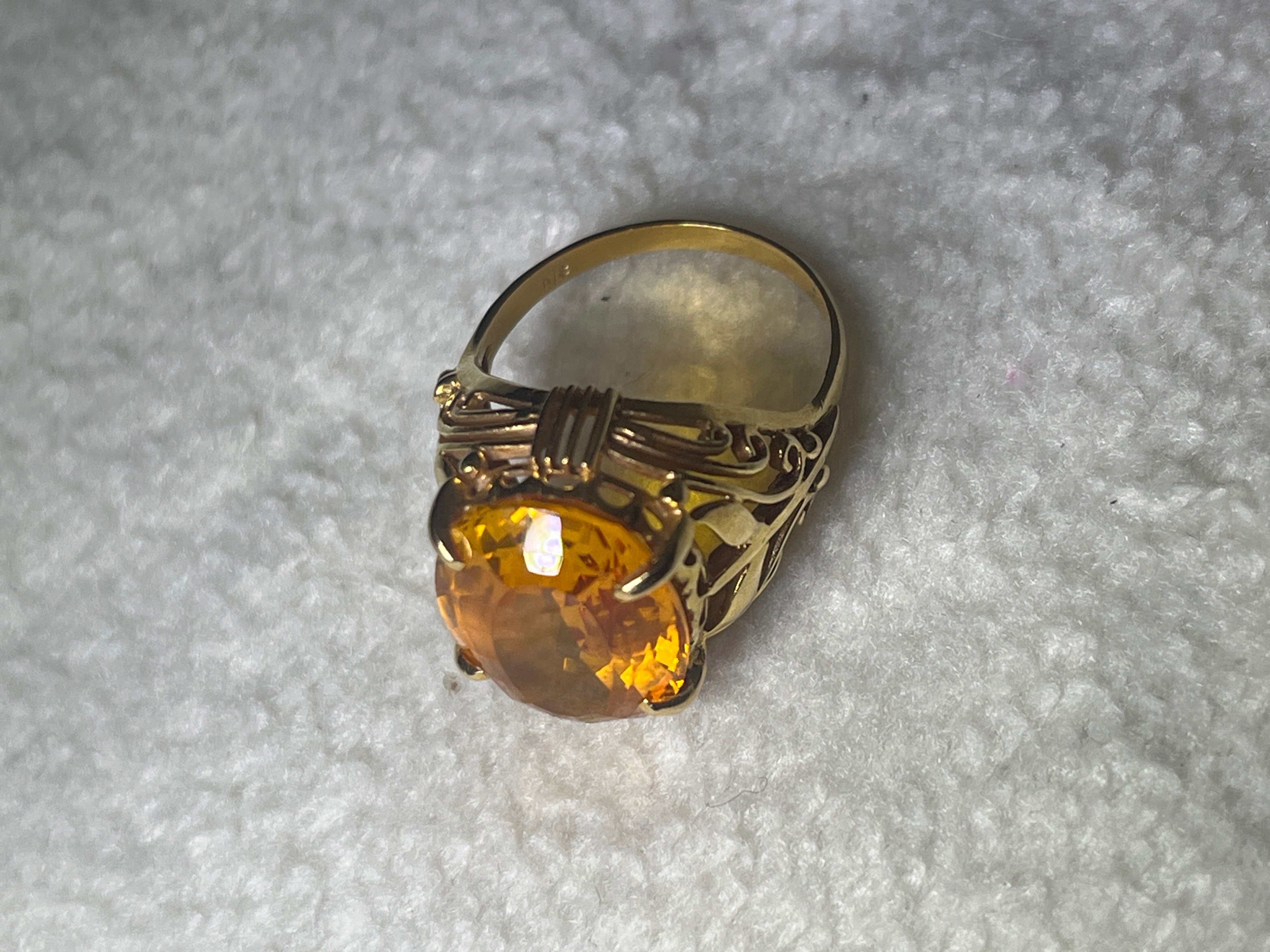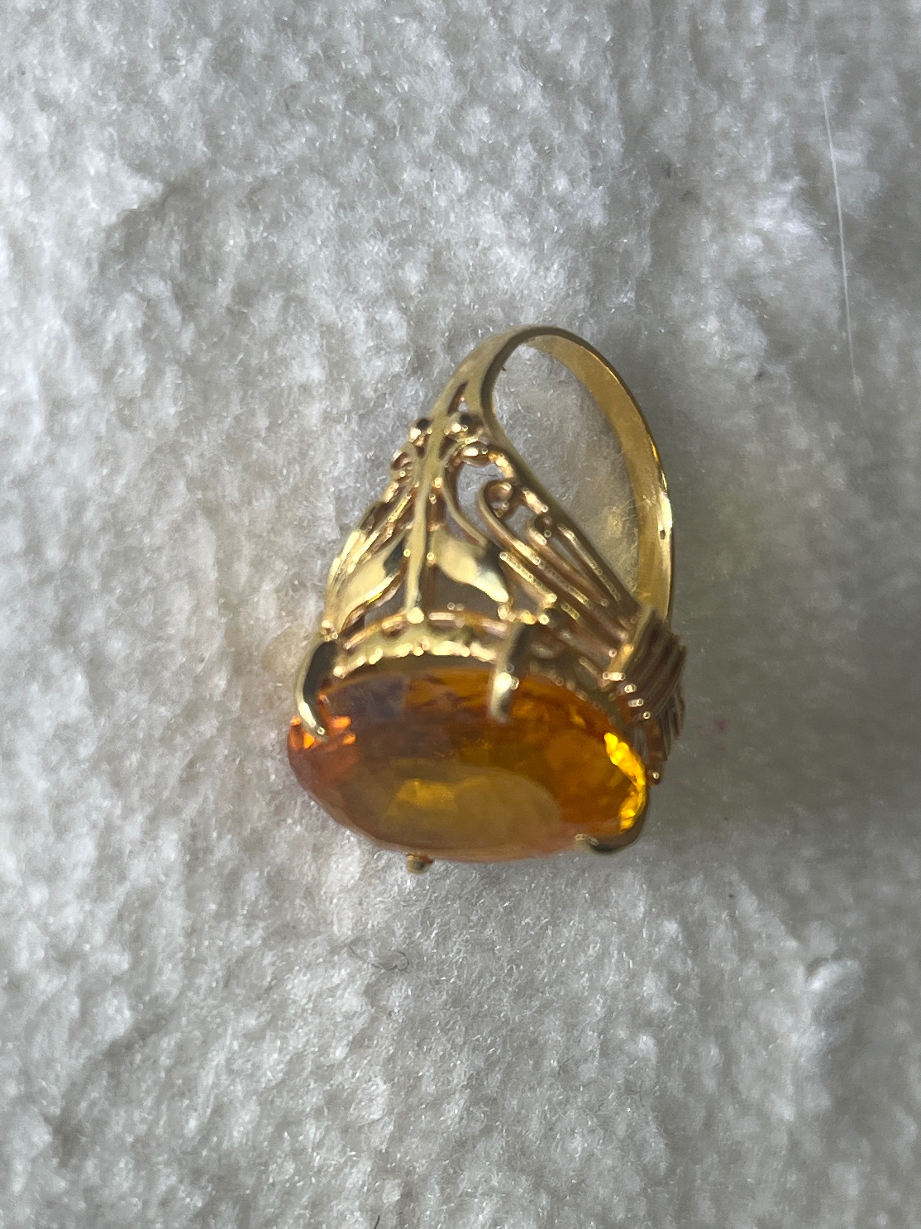 オレンジの宝石と、18金の指輪です。何の宝石か忘れました。