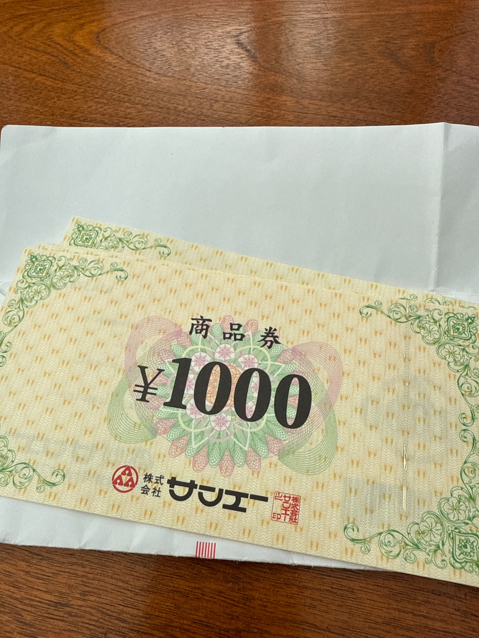 1000円の商品券が5枚