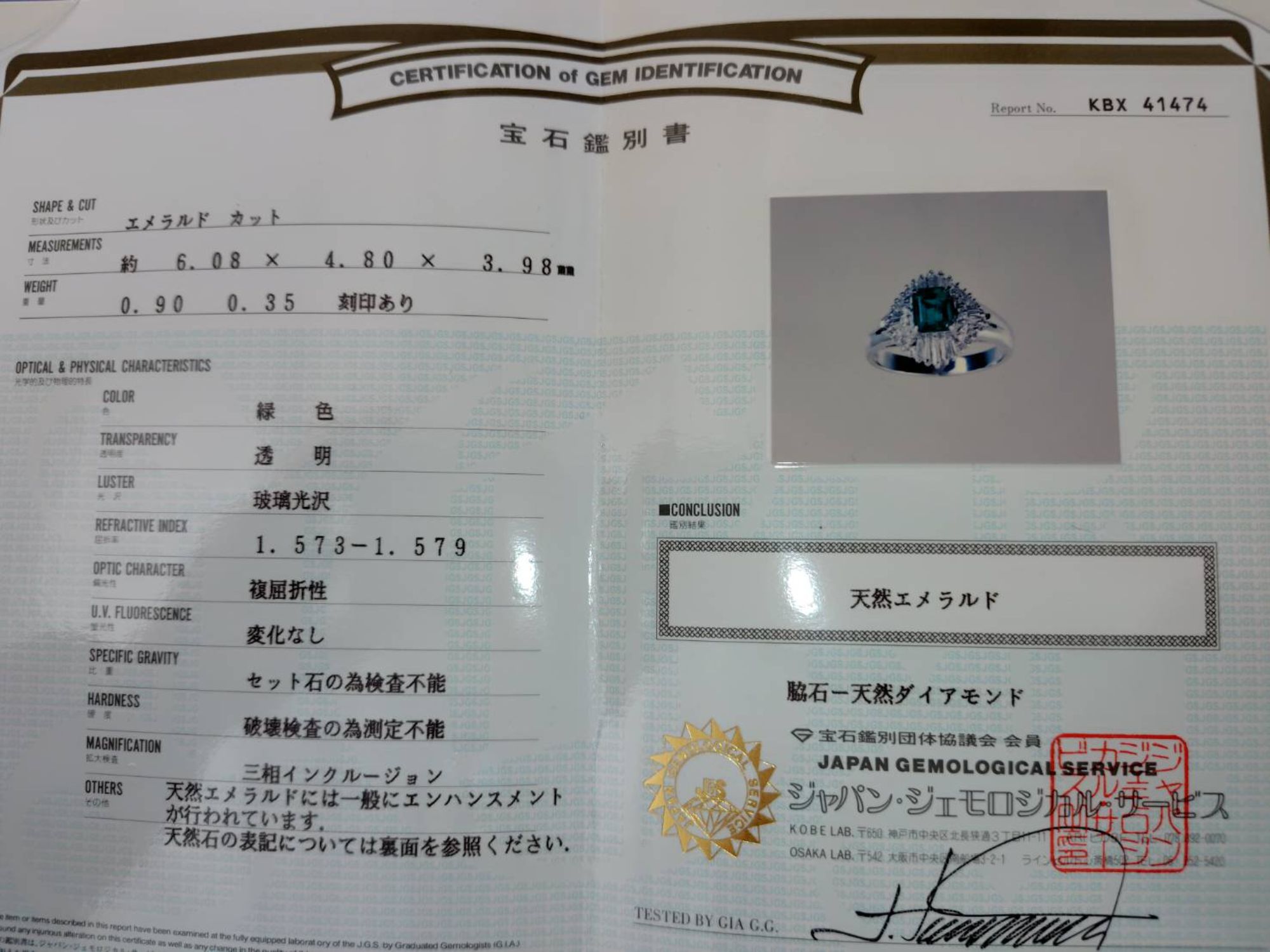 鑑定書を参照してください。 未使用品となります