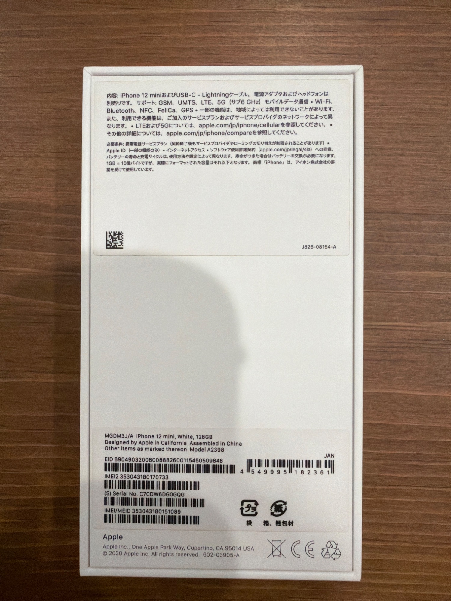 付属品:iPhone12miniの外箱、充電ケーブル(未使用)、取説