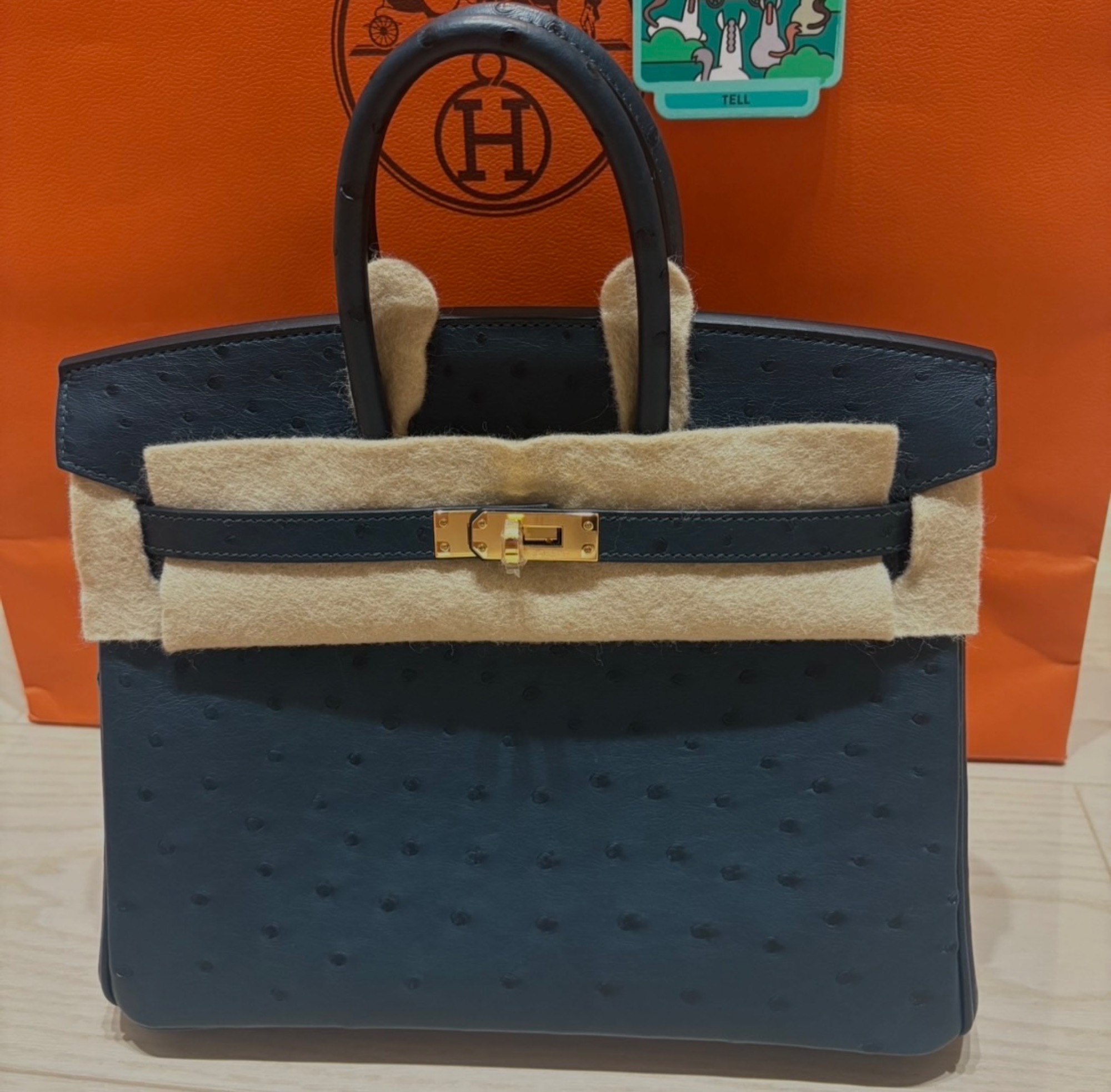 バーキン25 オーストリッチ ヴェールシプレ ゴールド金具 保護フィルム付き 付属品全てあり K刻印