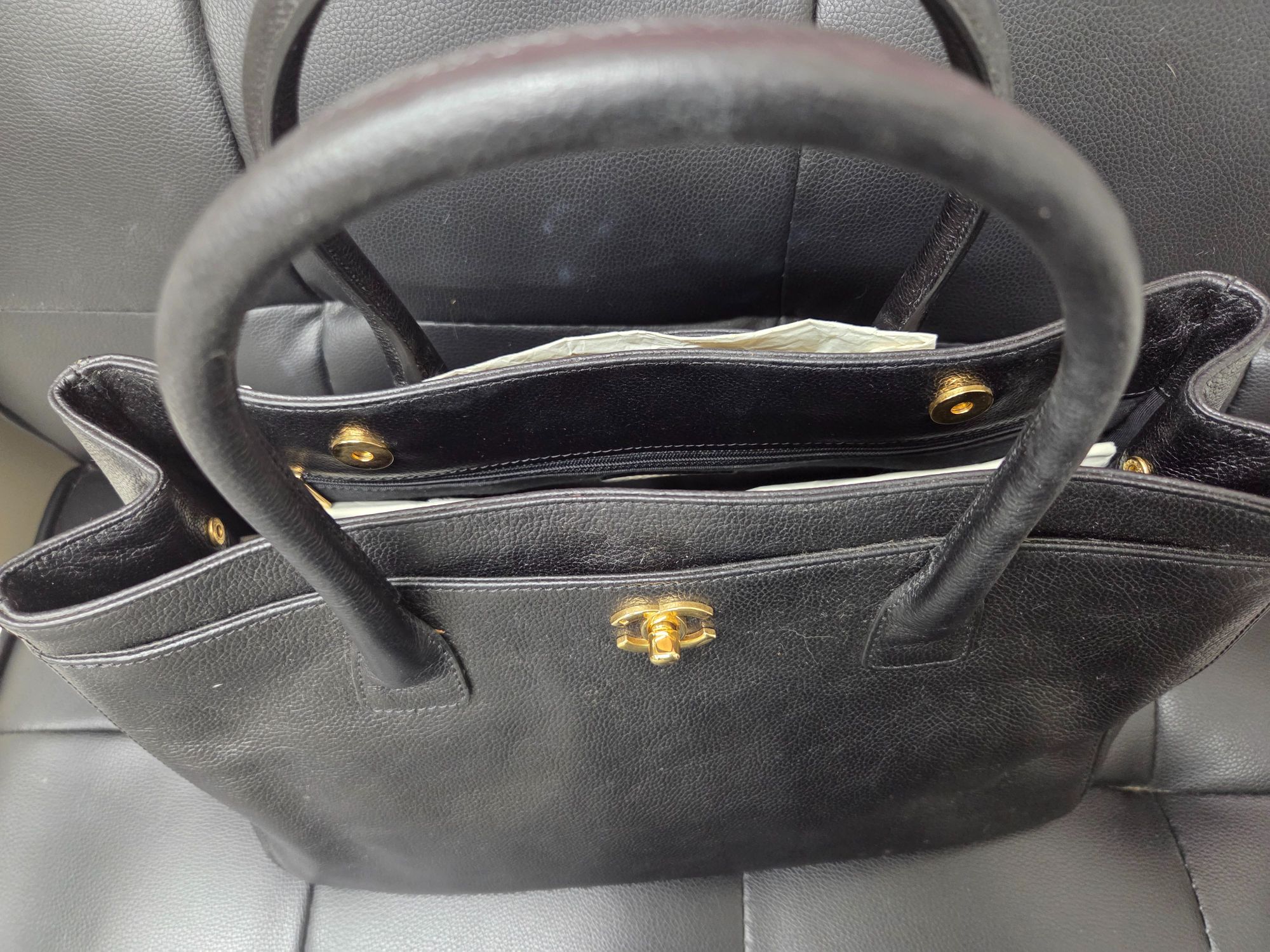 ◆コンディション 数回使用したのみですが、クロージェットに入れたままメンテナンスせず、長期保管ㆍ経年劣化による型崩れ、革の固さがありす。また3cm程の引っ掻き傷(画像最後)があります。バッグ底の四角はすり減りは見受けら...