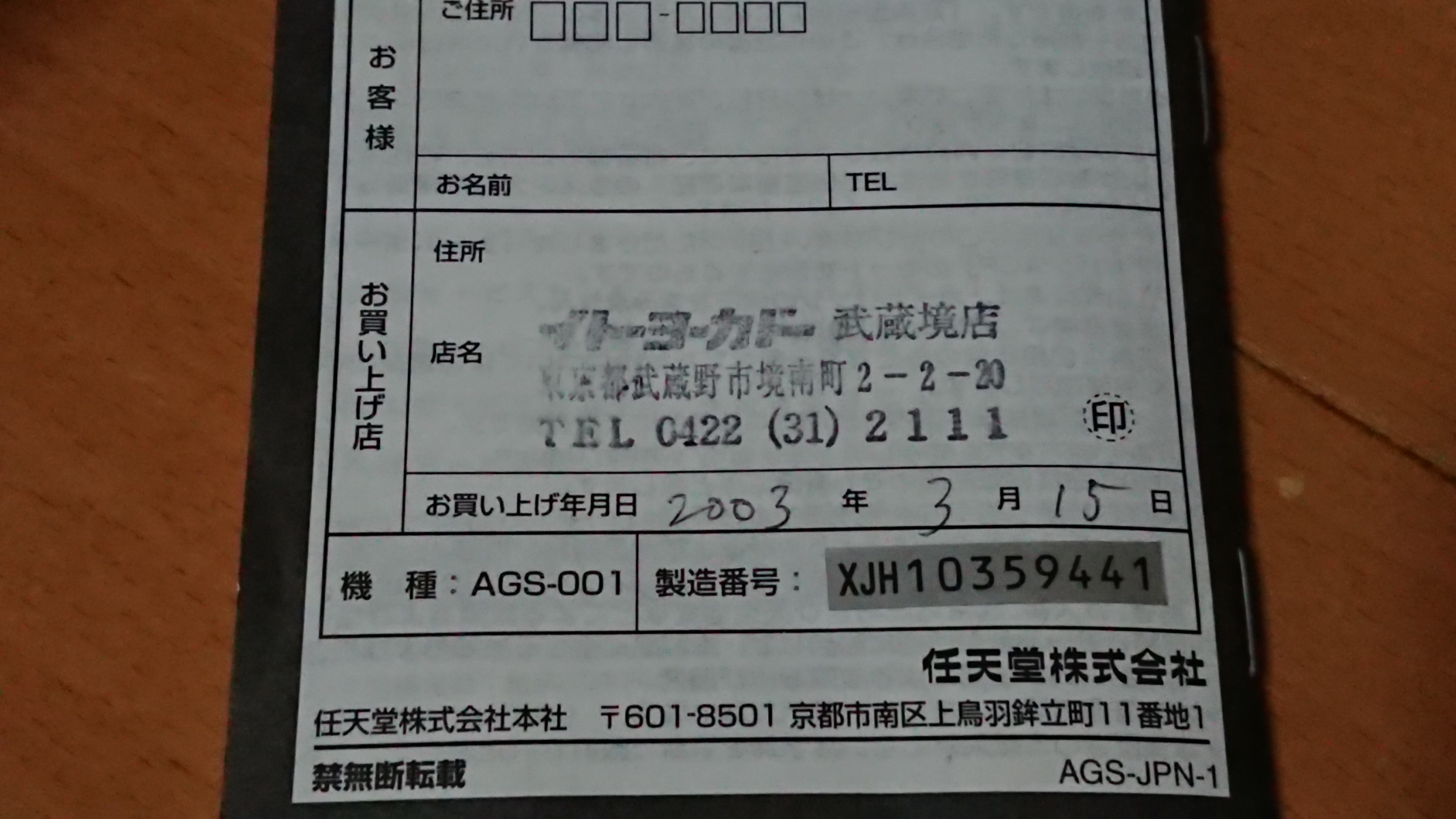 購入日2003年3月。