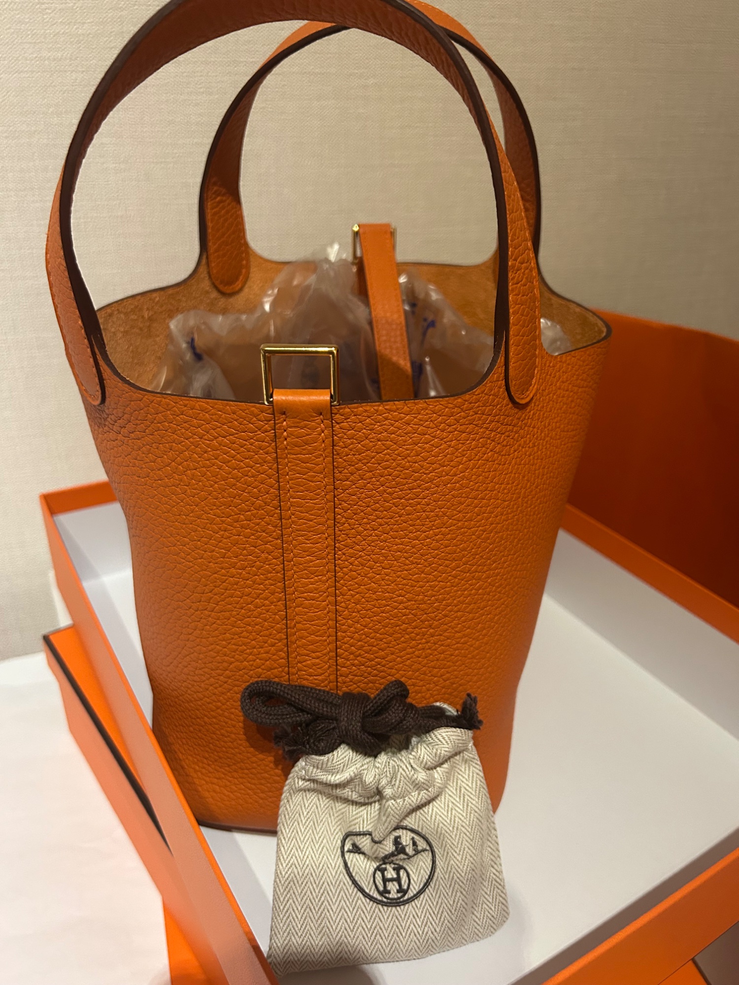 ピコタンロック18、付属品・箱全てあり、新品(2026年2月購入)、国内レシートあり、オレンジ・ゴールド金具、K刻印