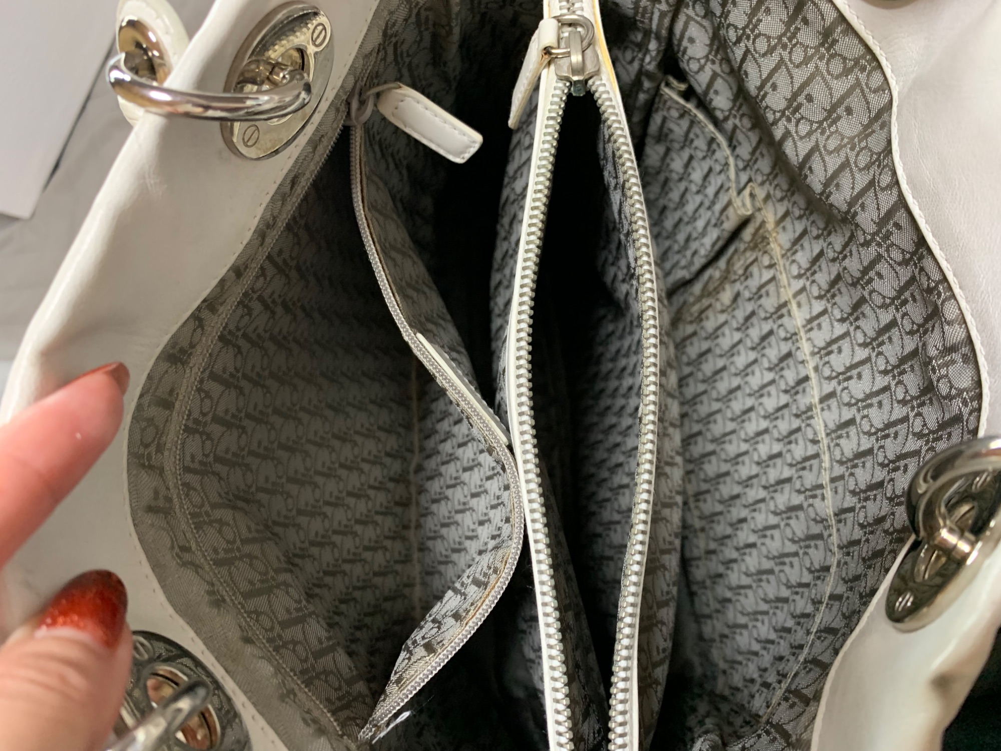 汚れあり。内ポケットのファスナーが錆びて開閉が困難。