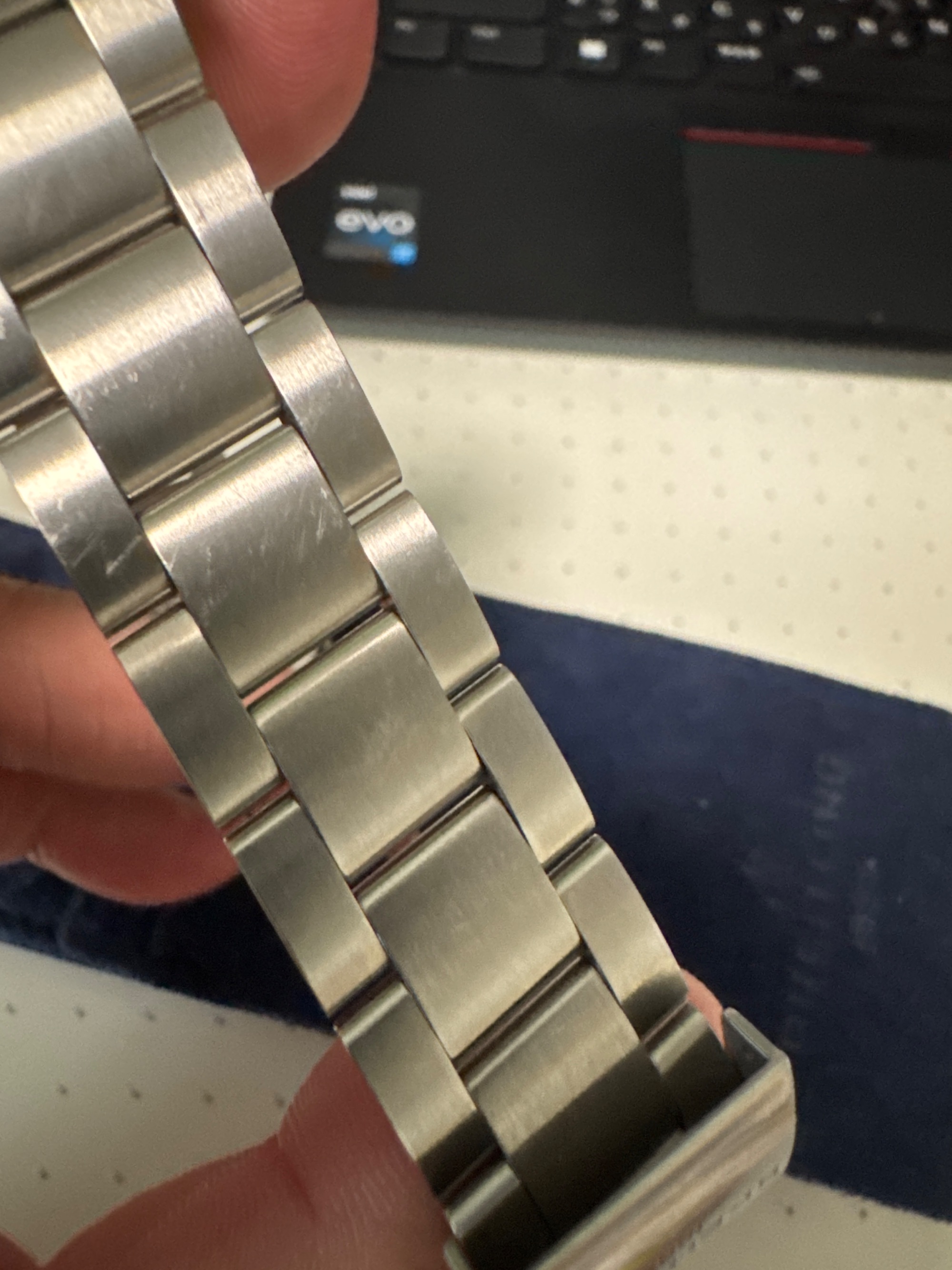 5回くらい着用して、ブレスレットに擦り傷があります。ガラス面などは綺麗です