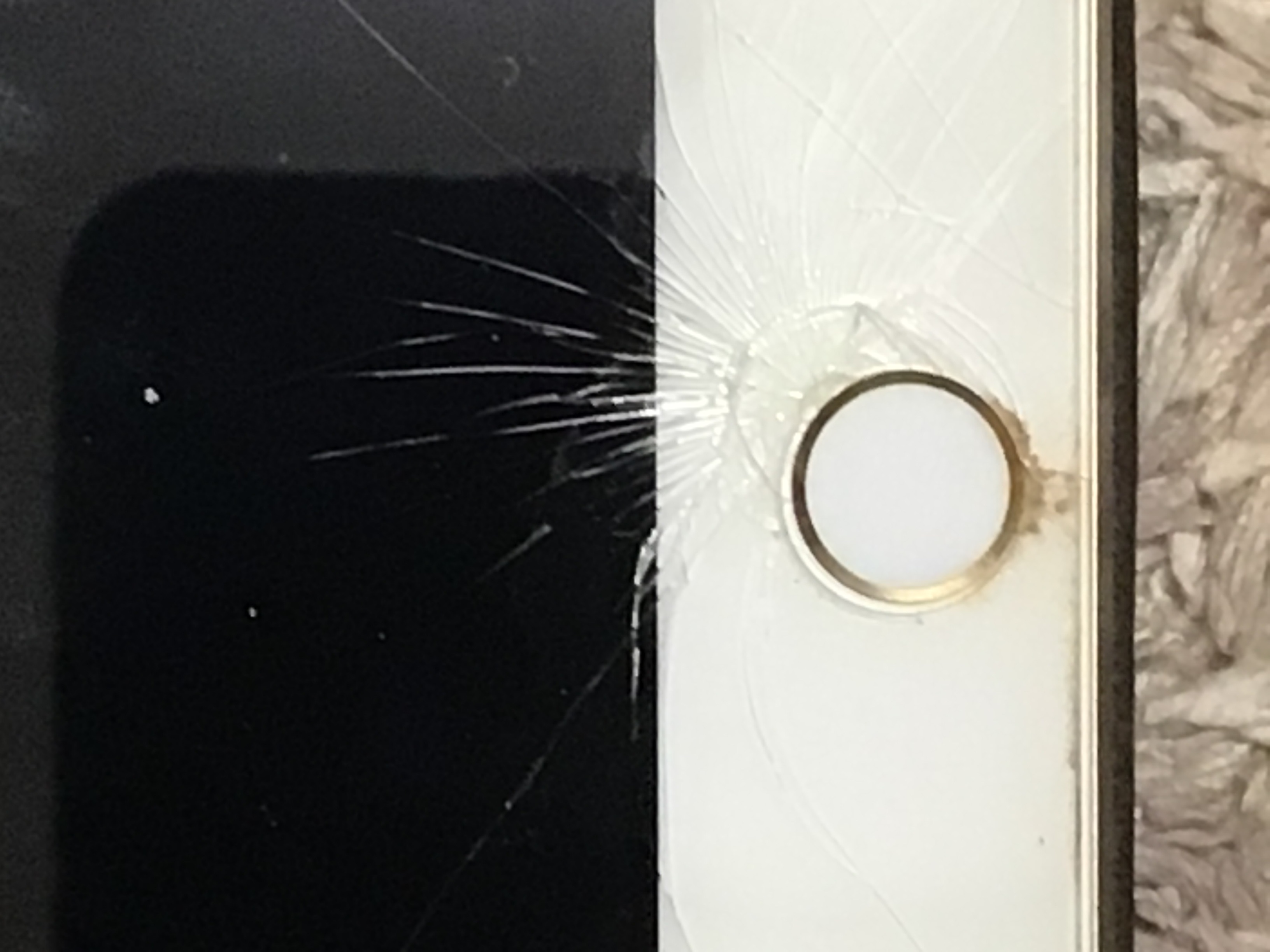 ひび割れがホームボタン横から広がった感じです。