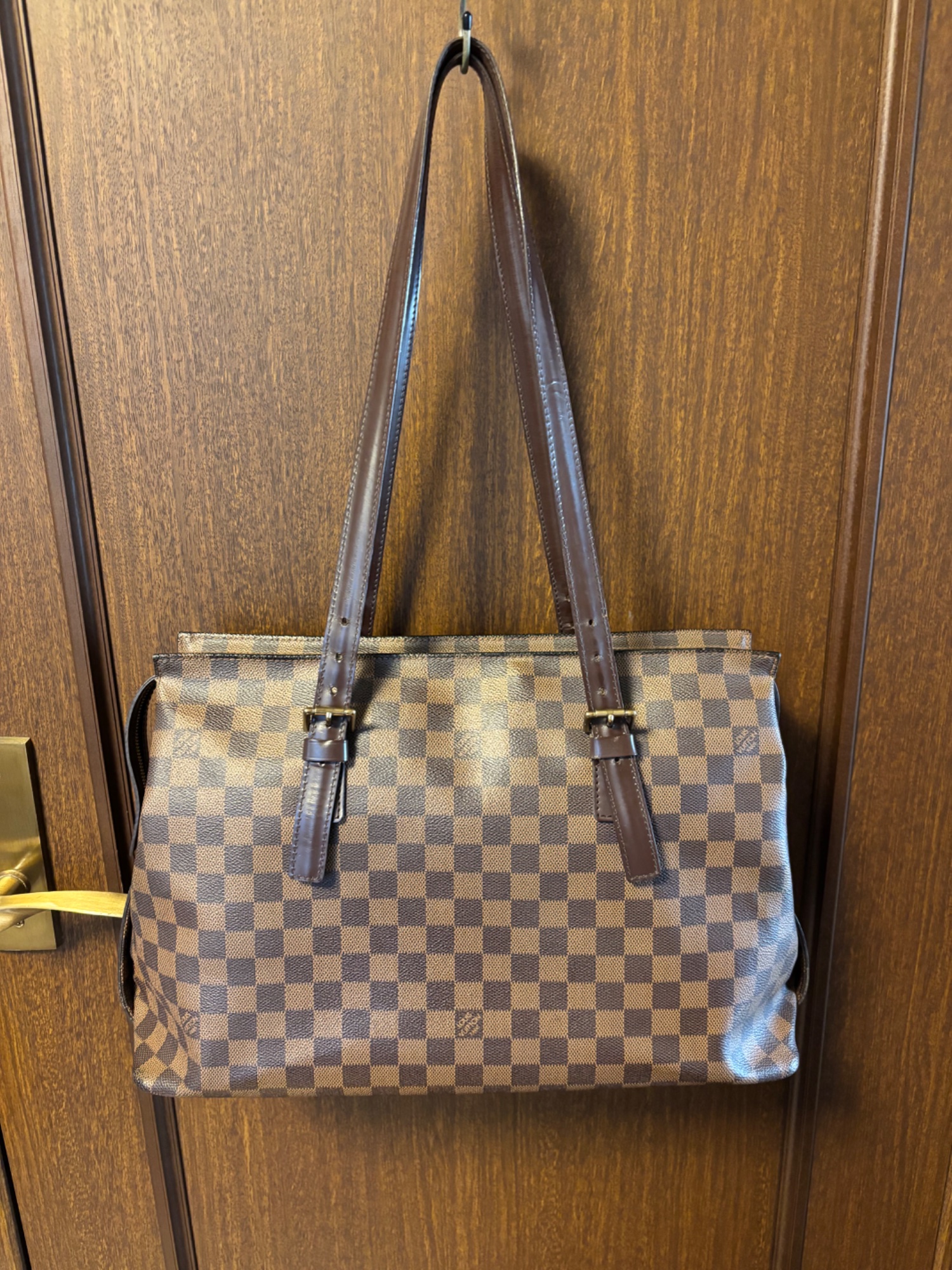 ルイヴィトン LV ダミエ チェルシー エベヌ トート/ショルダー バッグ鍵付き