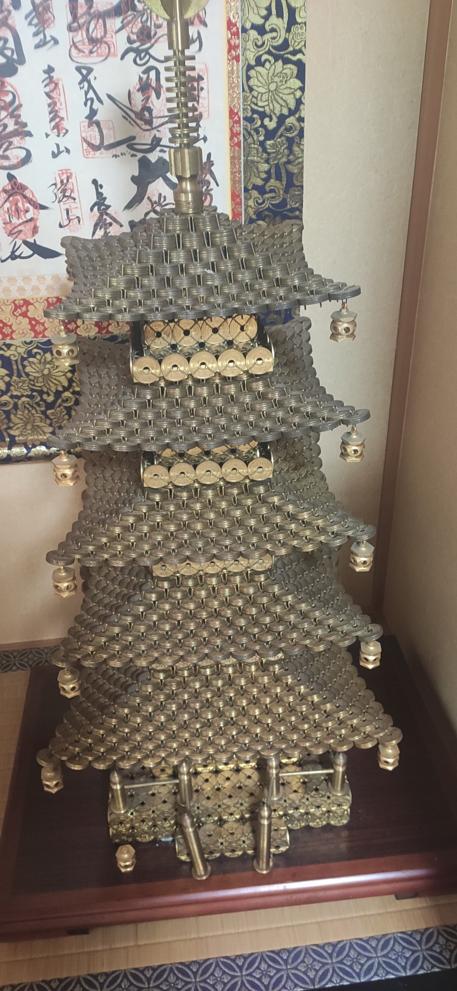 すべて5円玉で製作された五重の塔です。