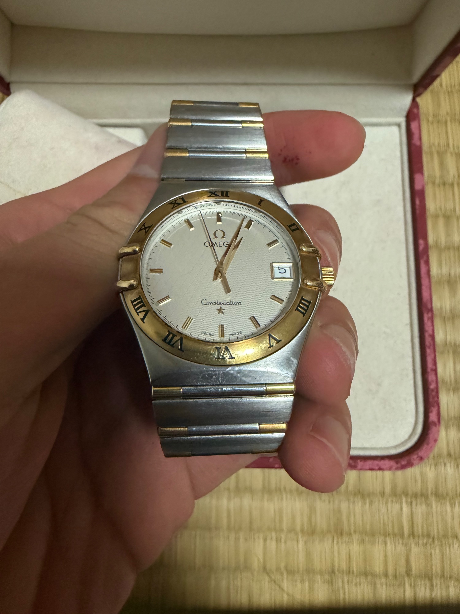 付属品は証明証や金属の付属品は全てついています。修理に出しているため動作は良好です。目立った傷や汚れはありません。