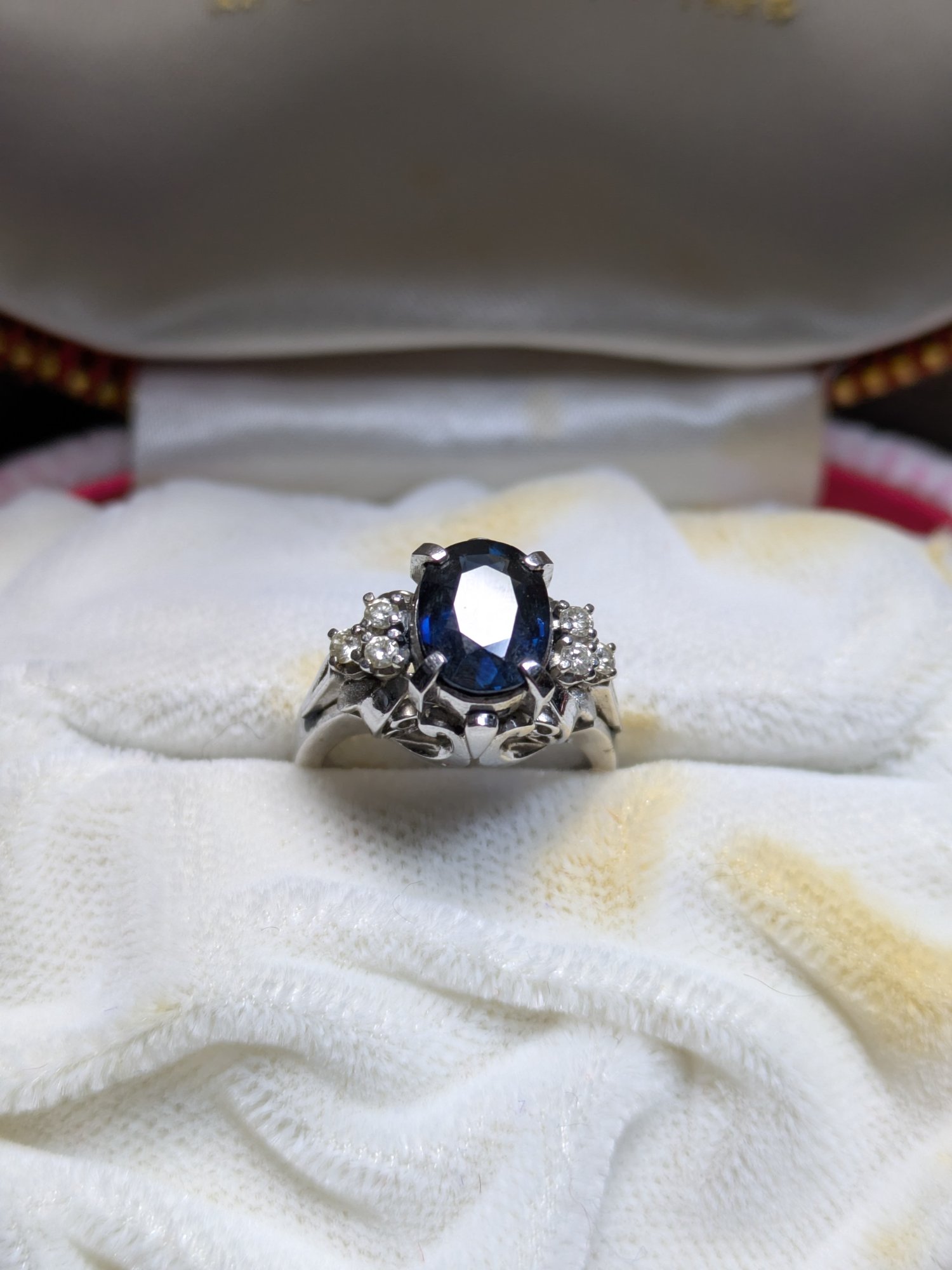 指輪 天然ブルーサファイア1.86ct メレ6天然ダイヤ 鑑別書あり。の買取査定価格・相場