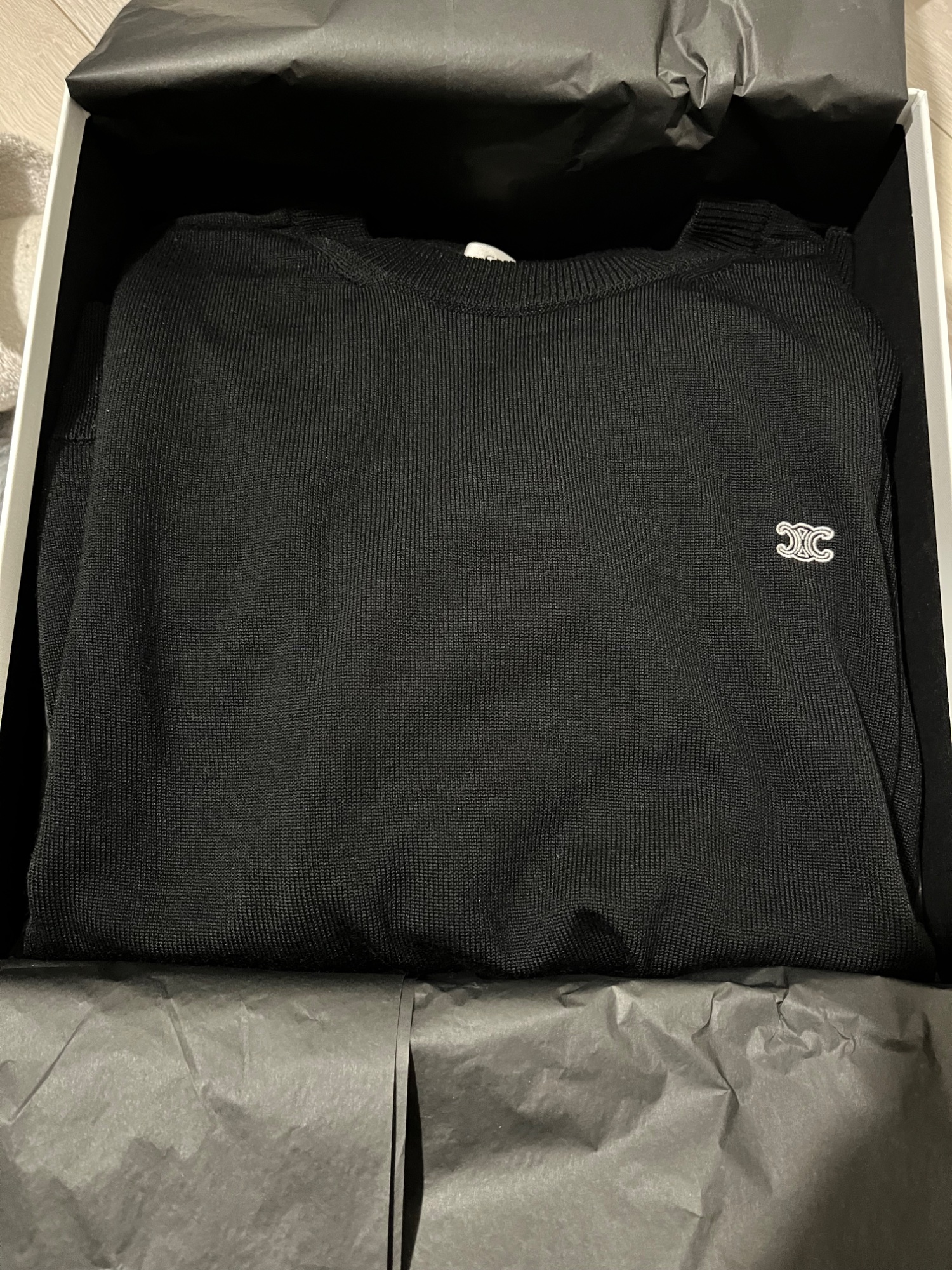 CELINE トリオンフ刺繍入り クラシック クルーネックセーター/ウール 箱とタグ付き