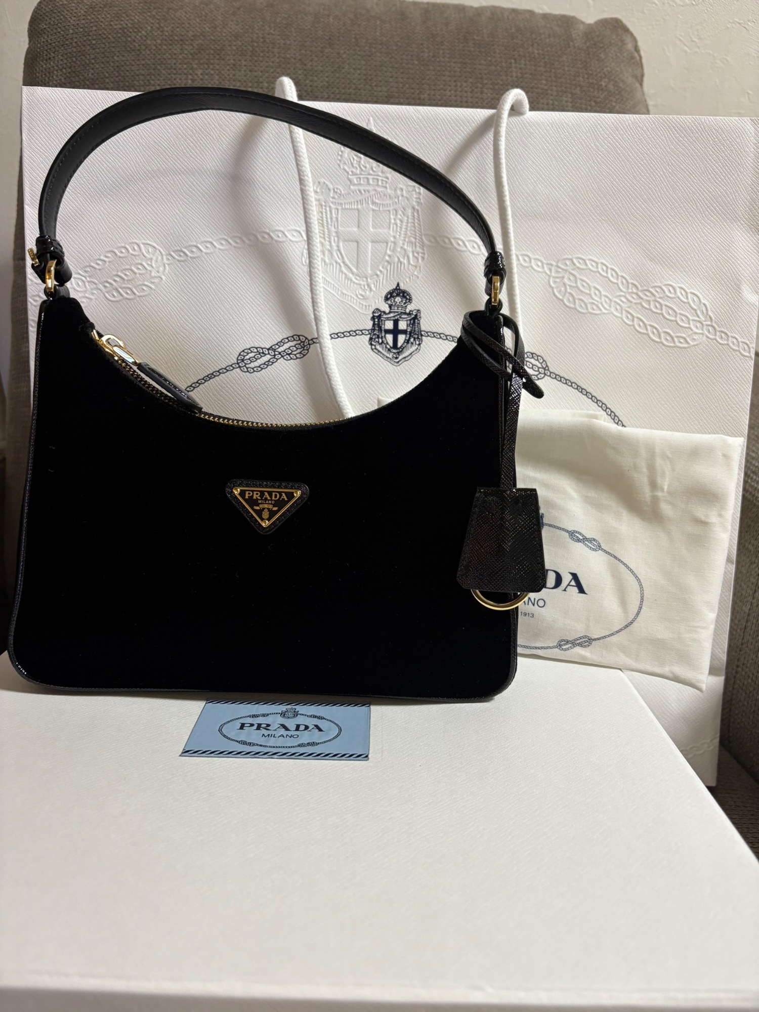 付属品 紙袋、箱、巾着袋、2025年12月末に貰った。ベルベット素材