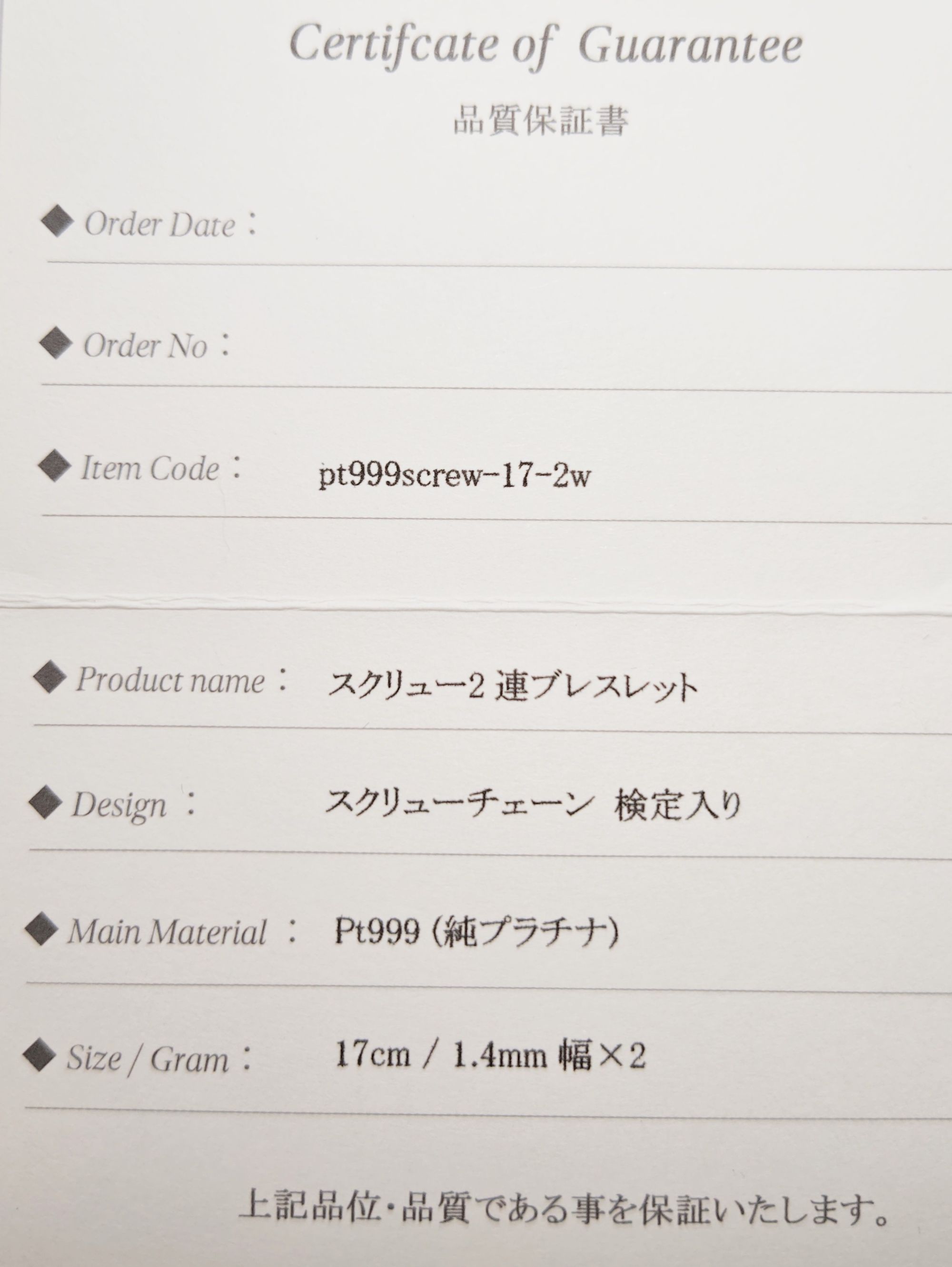 品質保証書つき