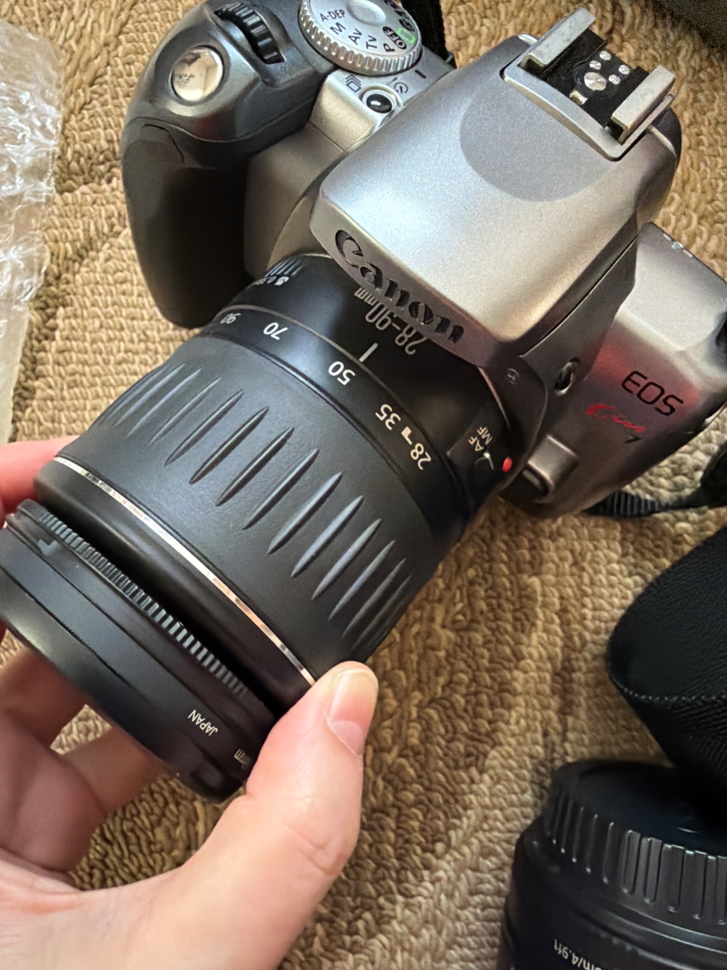 28ミリのレンズと、90ミリのレンズ、収納ケース、カバーあり