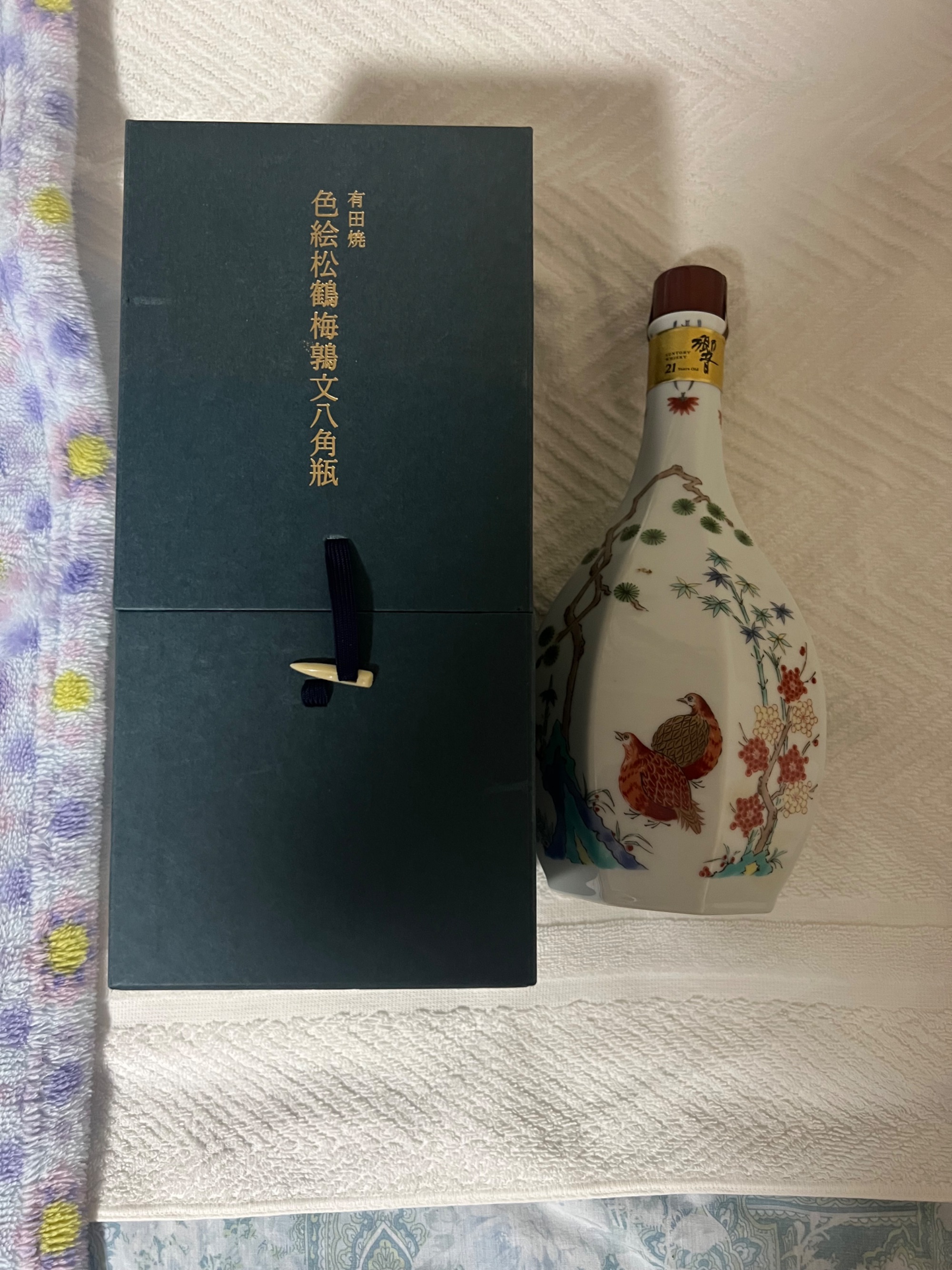 サントリー 響 スペシャルボトルコレクション 有田焼 色絵松鶴梅鶉文八角瓶 陶器ボトル 600ml